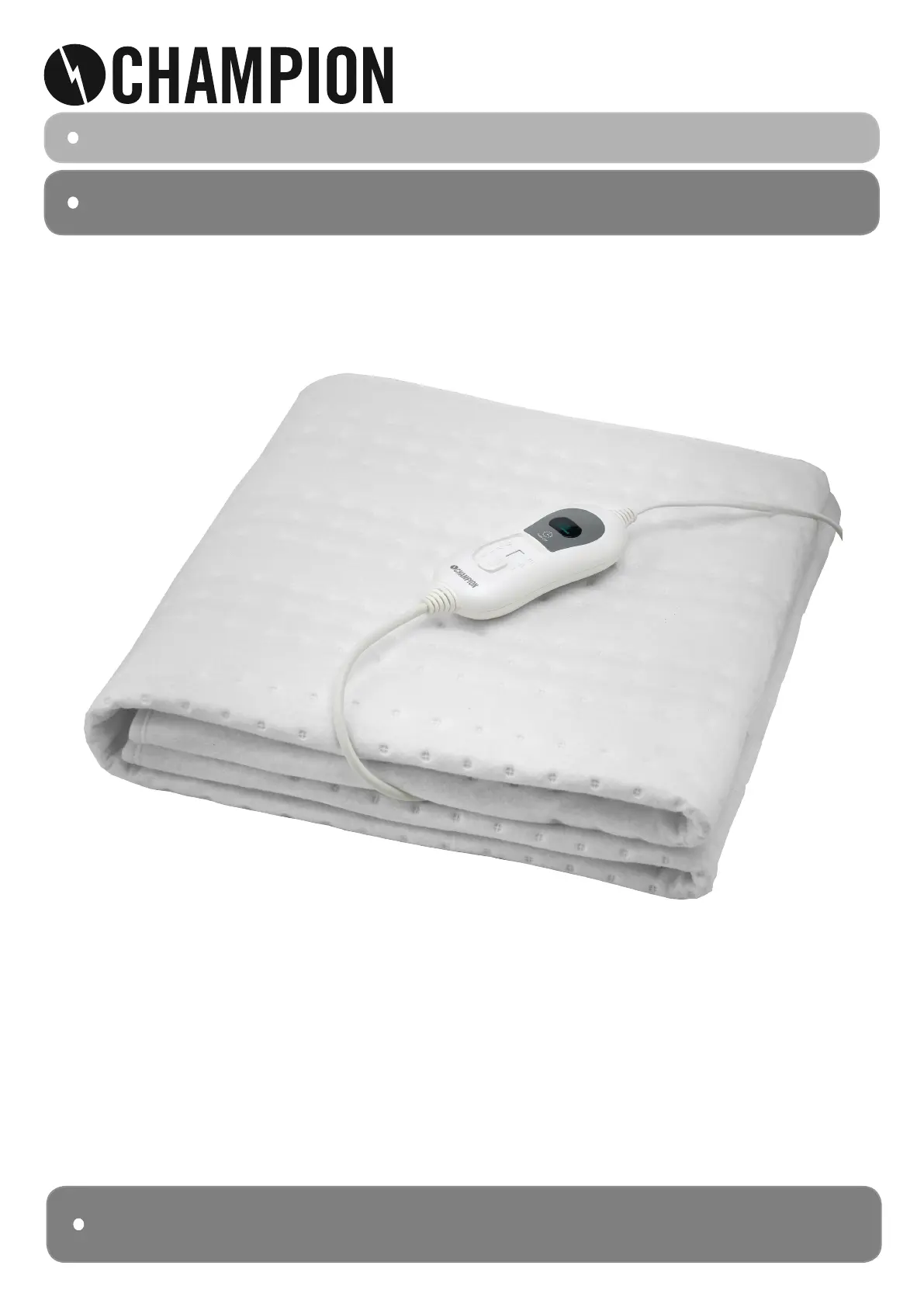 Lies die bedienungsanleitung für Champion CHBV110 (21 Seiten) kostenlos online; sie gehört zur Kategorie Heizdecke/Kissen. Dieses Handbuch wurde von 37 Personen als hilfreich bewertet und erhielt im Schnitt 4.2 Sterne aus 7 Bewertungen. Hast du eine Frage zu Champion CHBV110 oder möchtest du andere Nutzer dieses Produkts befragen? Stelle eine Frage