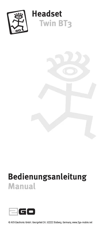 Lies die bedienungsanleitung für 2GO Twin BT3 (12 Seiten) kostenlos online; sie gehört zur Kategorie Headset. Dieses Handbuch wurde von 17 Personen als hilfreich bewertet und erhielt im Schnitt 4.3 Sterne aus 9 Bewertungen. Hast du eine Frage zu 2GO Twin BT3 oder möchtest du andere Nutzer dieses Produkts befragen? Stelle eine Frage