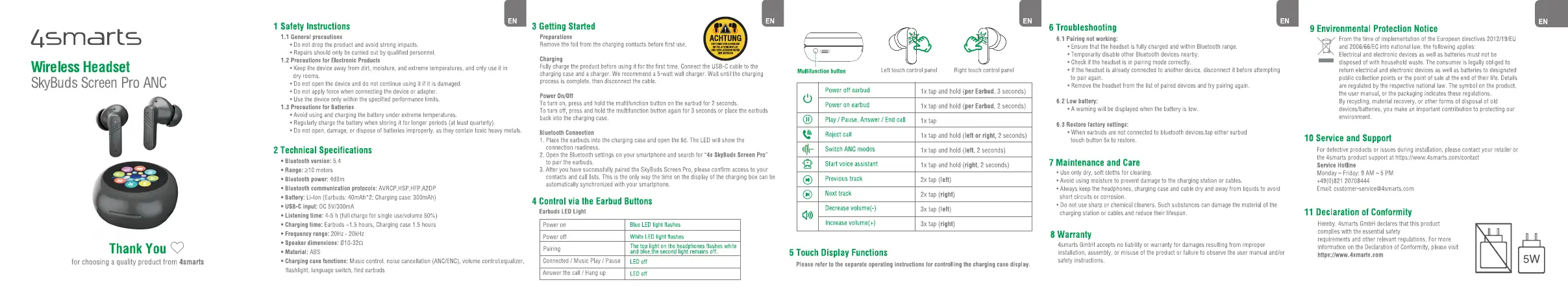 4smarts SkyBuds Screen Pro ANC Bedienungsanleitung