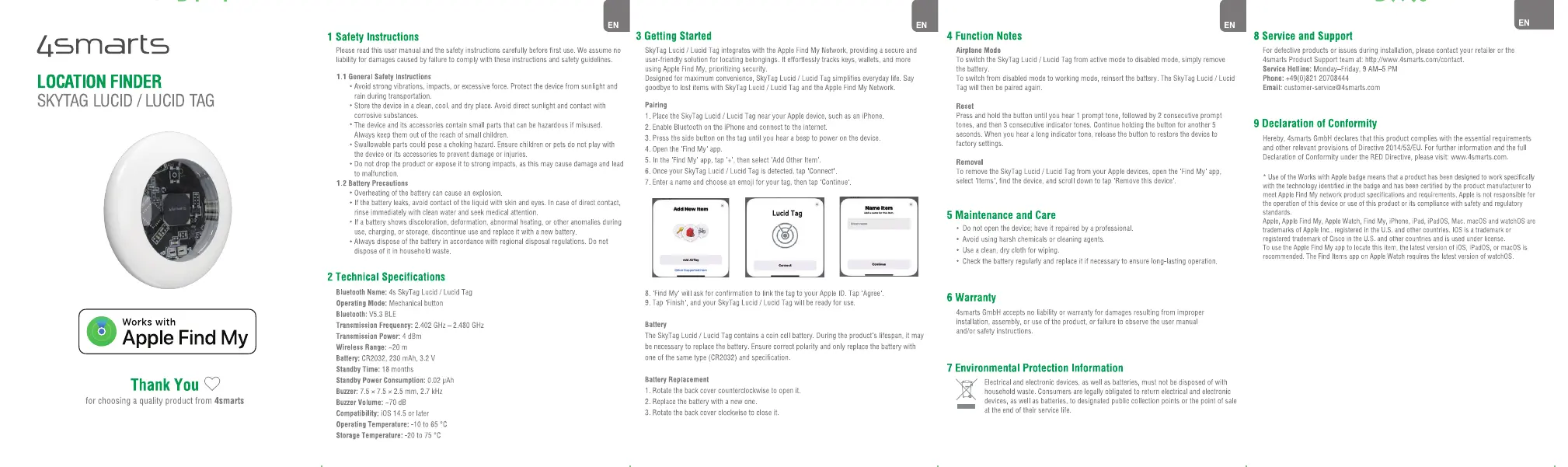 Lies die bedienungsanleitung für 4smarts SkyTag Lucid (2 Seiten) kostenlos online; sie gehört zur Kategorie Nicht kategorisiert. Dieses Handbuch wurde von 18 Personen als hilfreich bewertet und erhielt im Schnitt 4.2 Sterne aus 9.5 Bewertungen. Hast du eine Frage zu 4smarts SkyTag Lucid oder möchtest du andere Nutzer dieses Produkts befragen? Stelle eine Frage