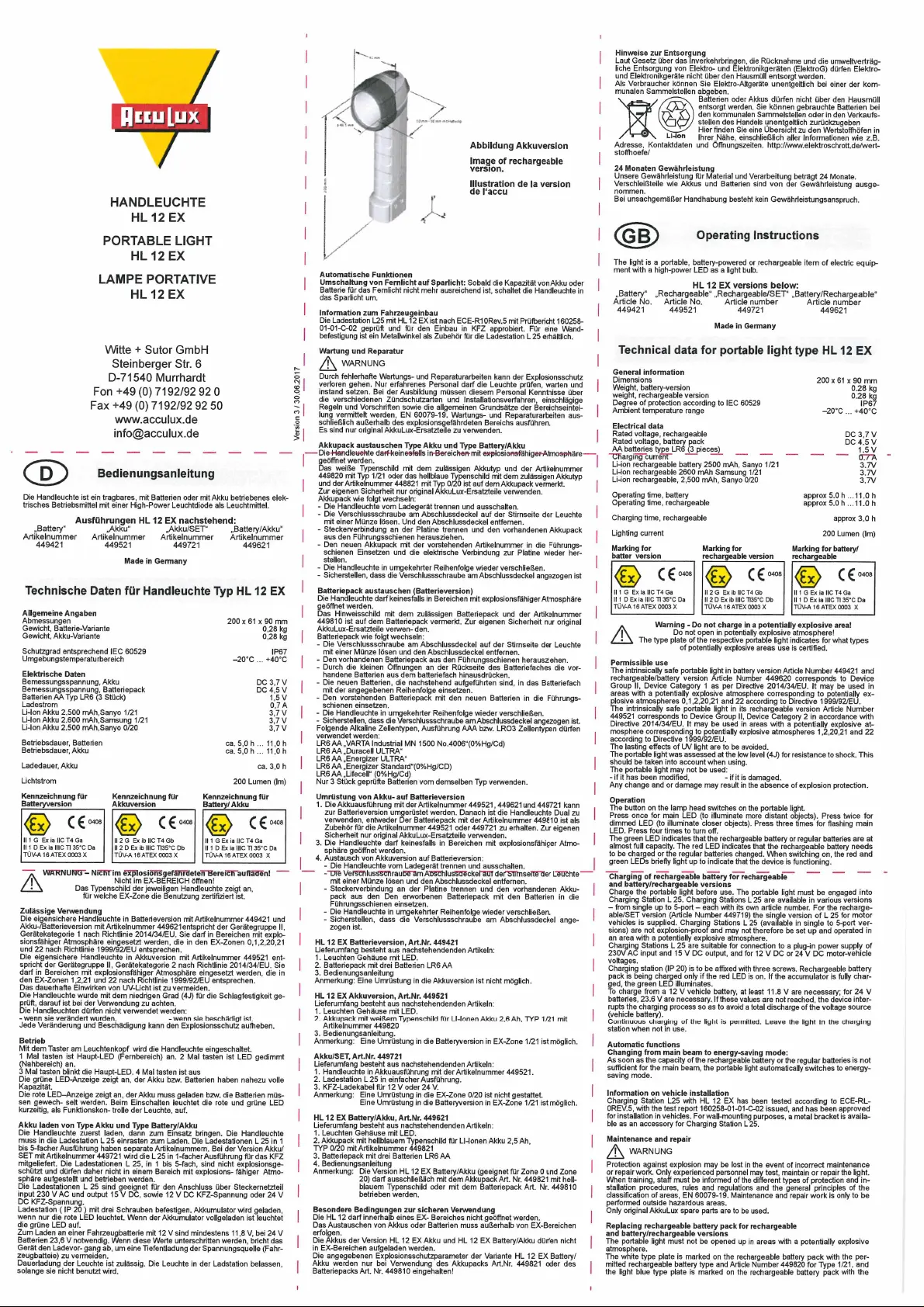 AccuLux HL 12 EX Bedienungsanleitung