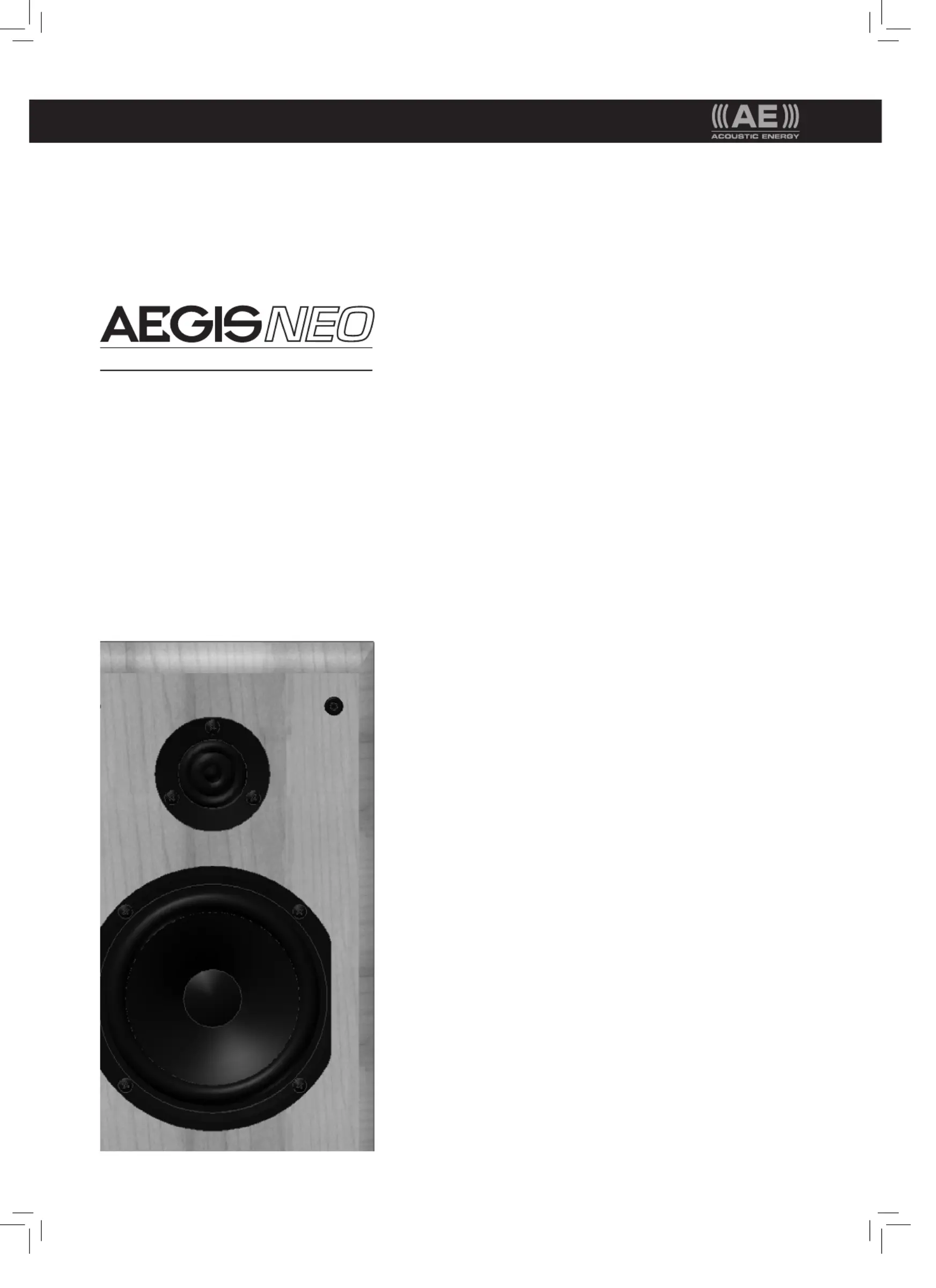 Lies die bedienungsanleitung für Acoustic Energy Aegis Neo (8 Seiten) kostenlos online; sie gehört zur Kategorie . Dieses Handbuch wurde von 37 Personen als hilfreich bewertet und erhielt im Schnitt 4.2 Sterne aus 19 Bewertungen. Hast du eine Frage zu Acoustic Energy Aegis Neo oder möchtest du andere Nutzer dieses Produkts befragen? Stelle eine Frage