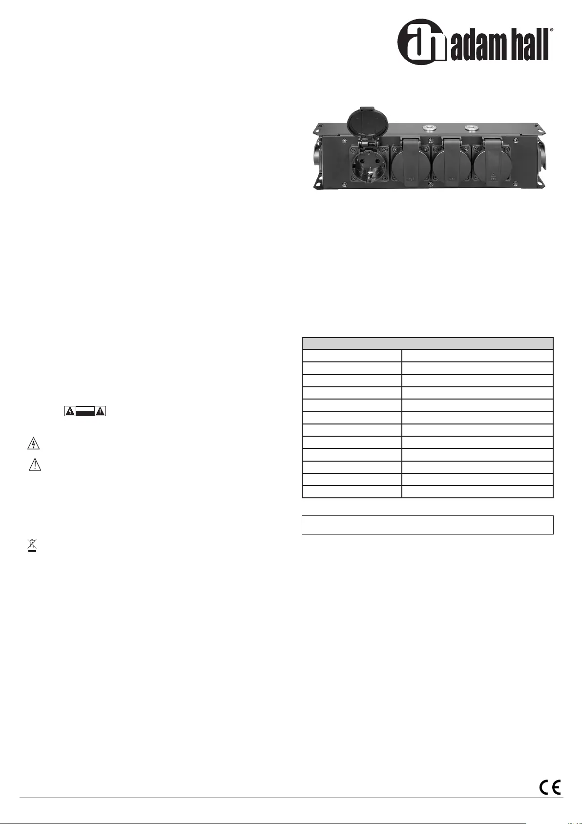 Bedienungsanleitung Steckdosenleiste Adam Hall