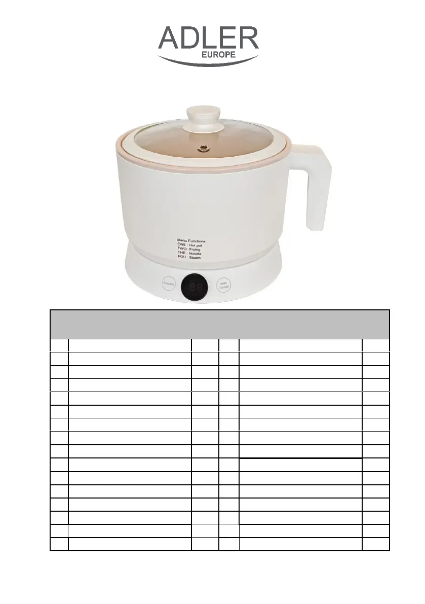 Lies die bedienungsanleitung für Adler AD 6422 (32 Seiten) kostenlos online; sie gehört zur Kategorie Multi-Kocher. Dieses Handbuch wurde von 3 Personen als hilfreich bewertet und erhielt im Schnitt 4.3 Sterne aus 8 Bewertungen. Hast du eine Frage zu Adler AD 6422 oder möchtest du andere Nutzer dieses Produkts befragen? Stelle eine Frage