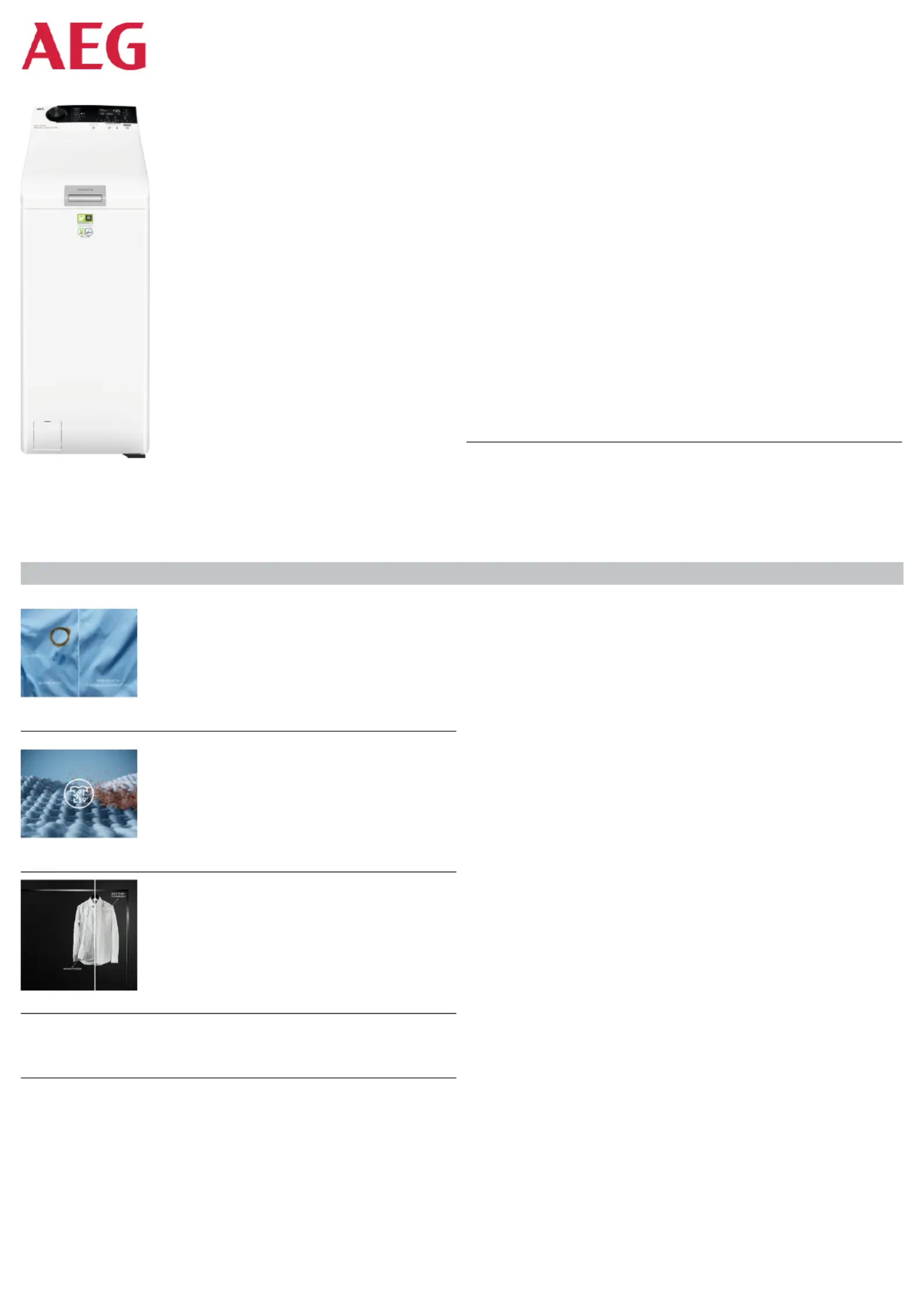 Lies die bedienungsanleitung für AEG LTR8E373E (2 Seiten) kostenlos online; sie gehört zur Kategorie Waschmaschine. Dieses Handbuch wurde von 29 Personen als hilfreich bewertet und erhielt im Schnitt 4.5 Sterne aus 15 Bewertungen. Hast du eine Frage zu AEG LTR8E373E oder möchtest du andere Nutzer dieses Produkts befragen? Stelle eine Frage