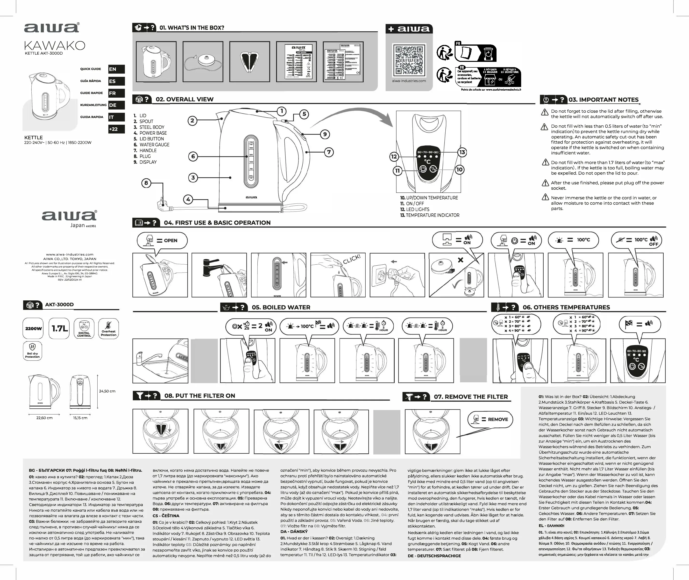 Lies die bedienungsanleitung für Aiwa KAWAKO AKT-3000D (2 Seiten) kostenlos online; sie gehört zur Kategorie Wasserkocher. Dieses Handbuch wurde von 13 Personen als hilfreich bewertet und erhielt im Schnitt 4.4 Sterne aus 7 Bewertungen. Hast du eine Frage zu Aiwa KAWAKO AKT-3000D oder möchtest du andere Nutzer dieses Produkts befragen? Stelle eine Frage