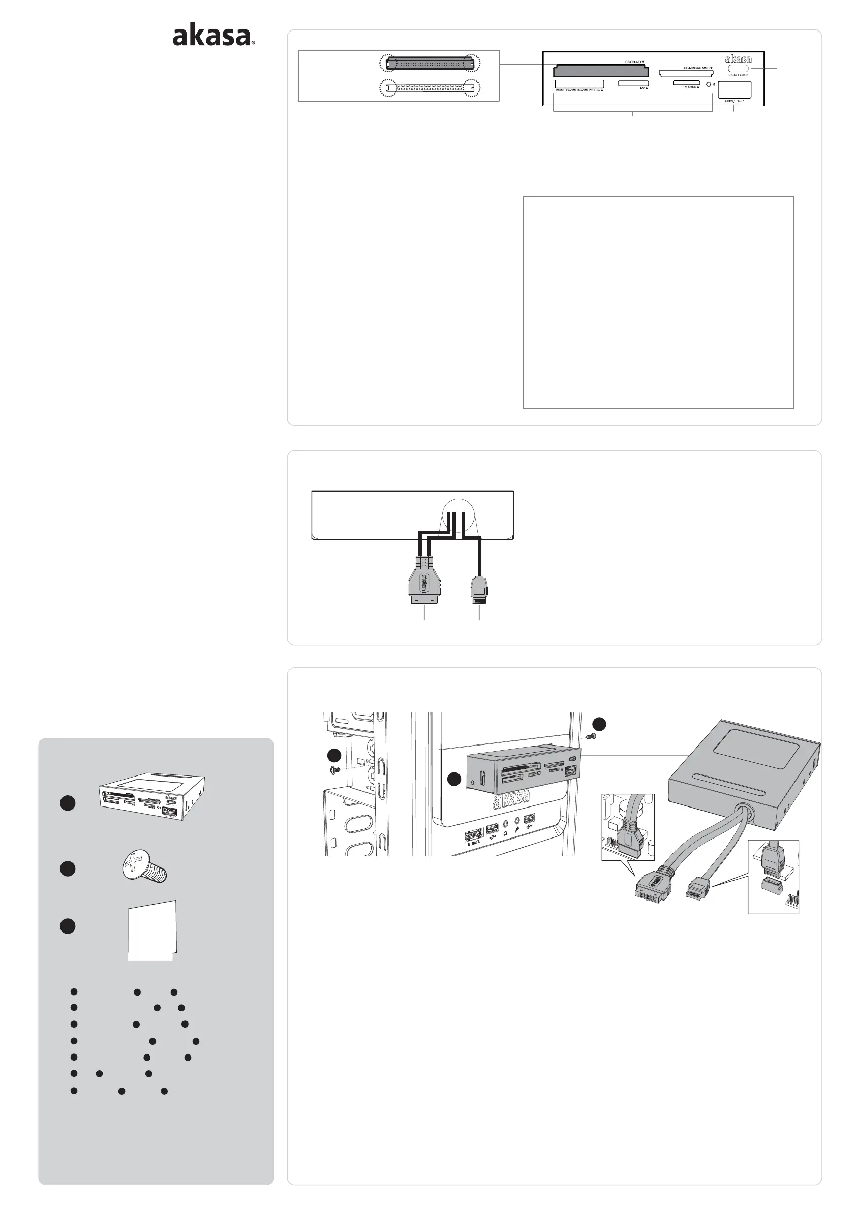 Lies die bedienungsanleitung für Akasa AK-ICR-33 (1 Seiten) kostenlos online; sie gehört zur Kategorie Speicherleser. Dieses Handbuch wurde von 4 Personen als hilfreich bewertet und erhielt im Schnitt 4.5 Sterne aus 2.5 Bewertungen. Hast du eine Frage zu Akasa AK-ICR-33 oder möchtest du andere Nutzer dieses Produkts befragen? Stelle eine Frage