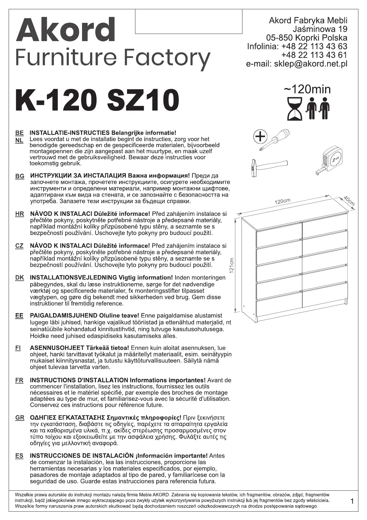 Lies die bedienungsanleitung für Akord K120 (16 Seiten) kostenlos online; sie gehört zur Kategorie Schrank. Dieses Handbuch wurde von 2 Personen als hilfreich bewertet und erhielt im Schnitt 4.6 Sterne aus 6 Bewertungen. Hast du eine Frage zu Akord K120 oder möchtest du andere Nutzer dieses Produkts befragen? Stelle eine Frage