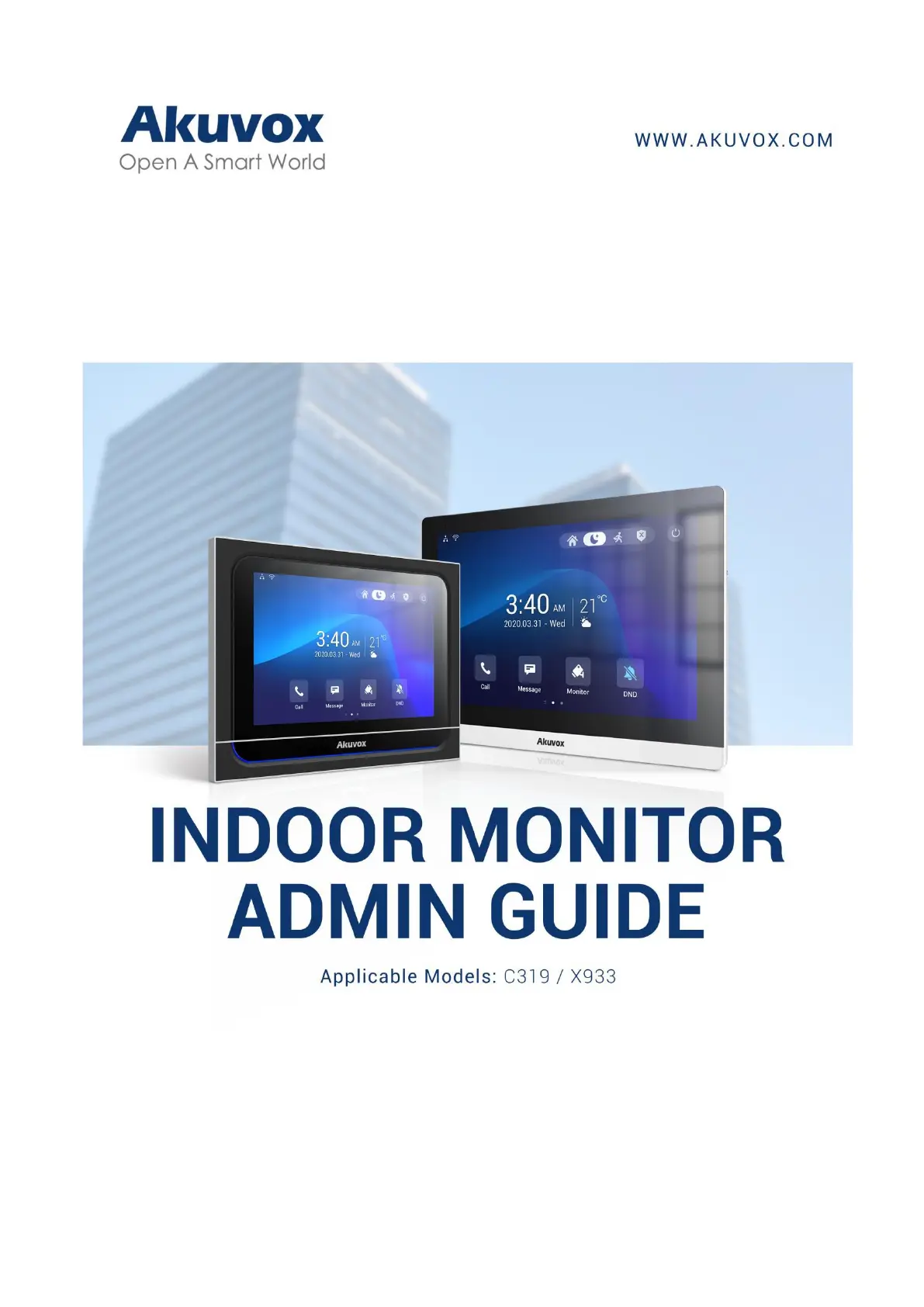 Lies die bedienungsanleitung für Akuvox X933S (144 Seiten) kostenlos online; sie gehört zur Kategorie Monitor. Dieses Handbuch wurde von 20 Personen als hilfreich bewertet und erhielt im Schnitt 4.7 Sterne aus 10.5 Bewertungen. Hast du eine Frage zu Akuvox X933S oder möchtest du andere Nutzer dieses Produkts befragen? Stelle eine Frage