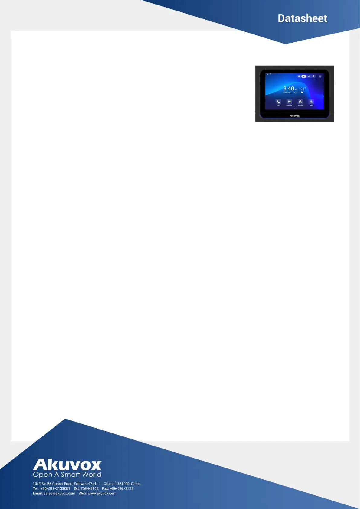 Lies die bedienungsanleitung für Akuvox X933W (2 Seiten) kostenlos online; sie gehört zur Kategorie Monitor. Dieses Handbuch wurde von 35 Personen als hilfreich bewertet und erhielt im Schnitt 4.8 Sterne aus 8 Bewertungen. Hast du eine Frage zu Akuvox X933W oder möchtest du andere Nutzer dieses Produkts befragen? Stelle eine Frage