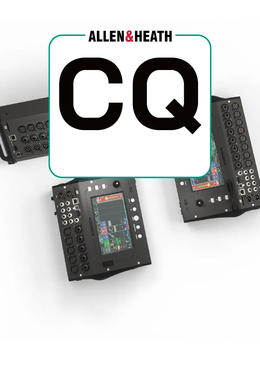 Lies die bedienungsanleitung für Allen & Heath CQ-18T (39 Seiten) kostenlos online; sie gehört zur Kategorie Mischer. Dieses Handbuch wurde von 91 Personen als hilfreich bewertet und erhielt im Schnitt 4.3 Sterne aus 46 Bewertungen. Hast du eine Frage zu Allen & Heath CQ-18T oder möchtest du andere Nutzer dieses Produkts befragen? Stelle eine Frage
