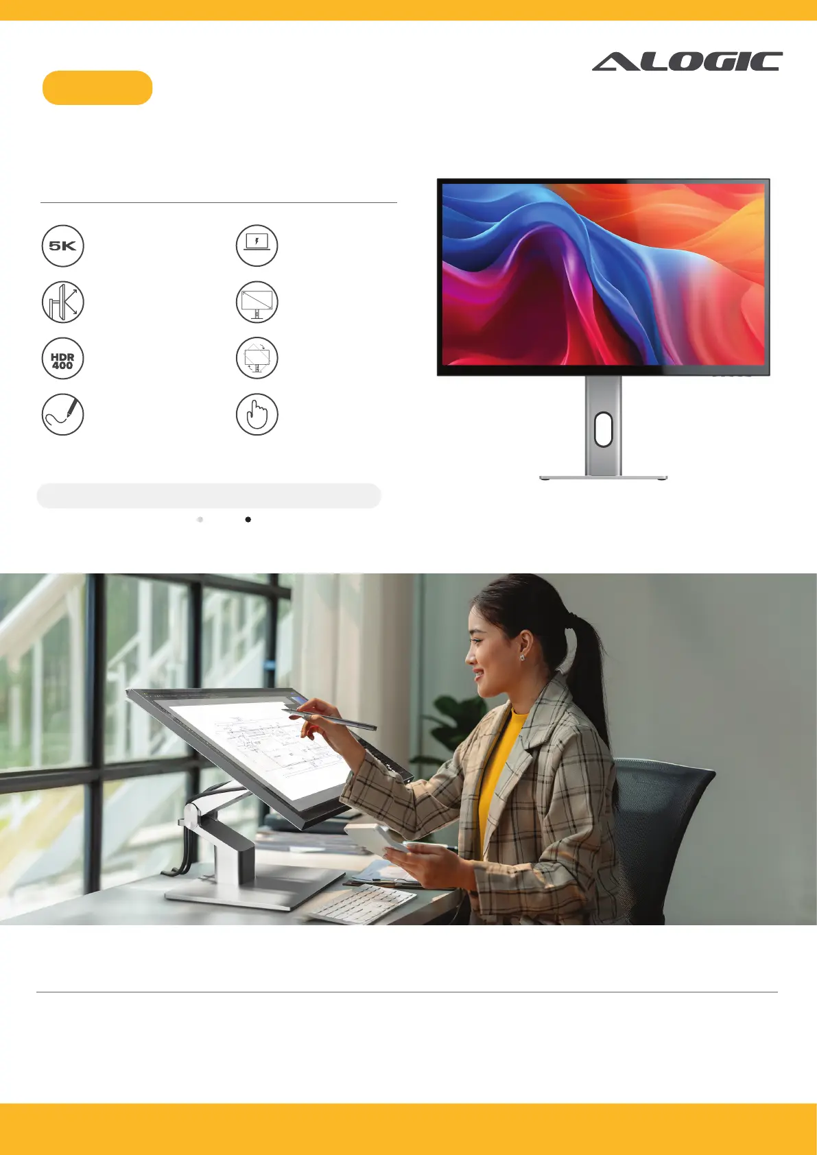 or paint onto with our pressure-sensitive Clarity Active Stylus. It’s the world’s first 5K touchscreen for Mac, brought to you by ALOGIC.