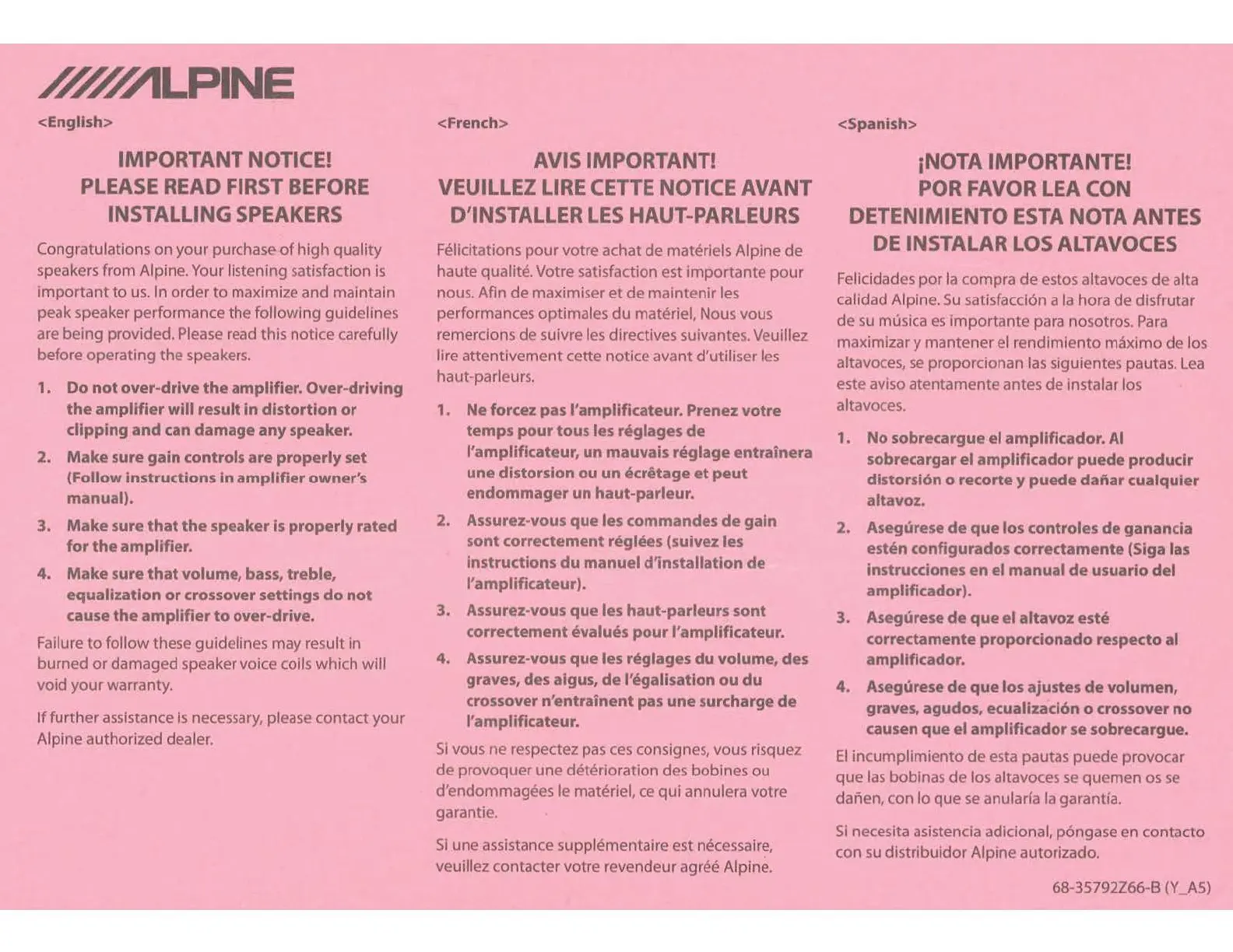 Bedienungsanleitung Lautsprecher Alpine