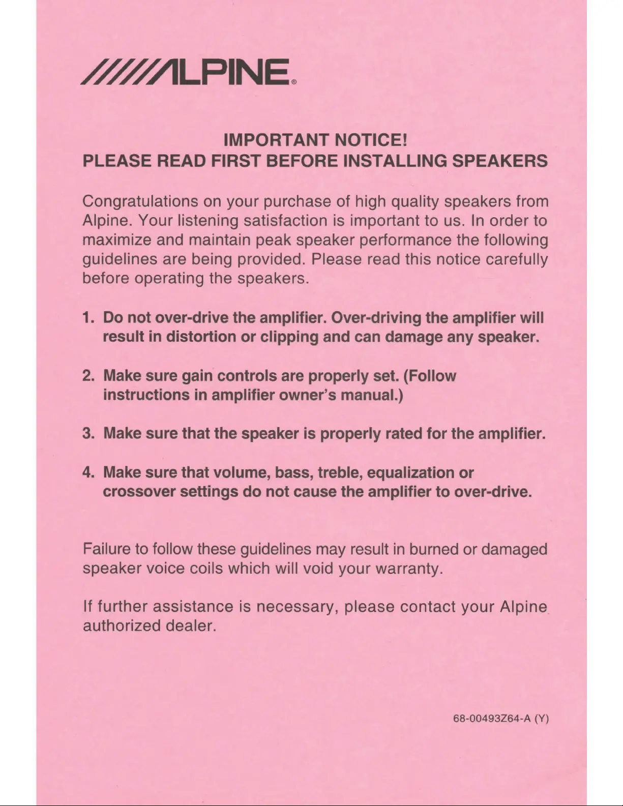 Alpine. Your listening satisfaction is important to us. In order to