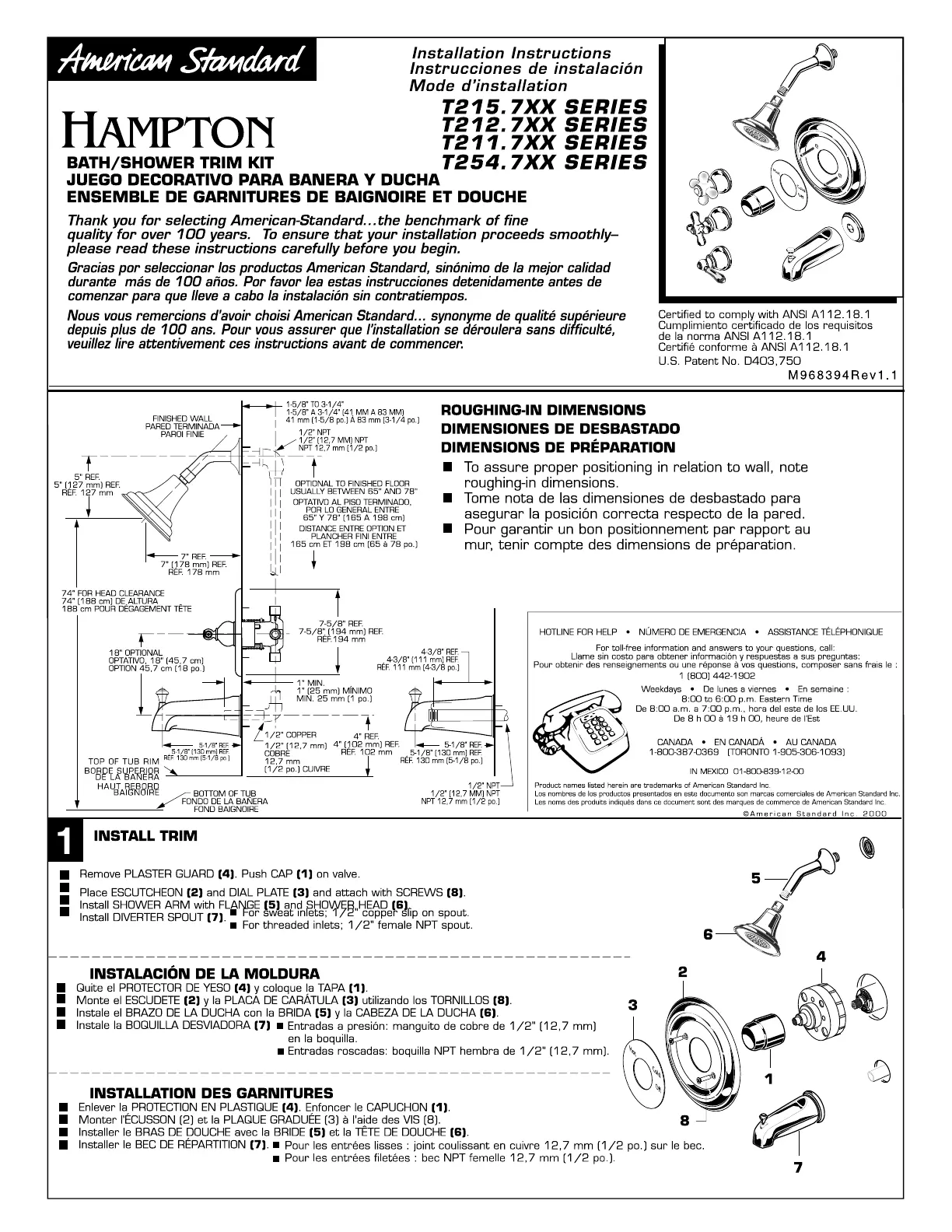 Lies die bedienungsanleitung für American Standard Hampton T215710.002 (4 Seiten) kostenlos online; sie gehört zur Kategorie Duschsystem. Dieses Handbuch wurde von 2 Personen als hilfreich bewertet und erhielt im Schnitt 4.4 Sterne aus 6 Bewertungen. Hast du eine Frage zu American Standard Hampton T215710.002 oder möchtest du andere Nutzer dieses Produkts befragen? Stelle eine Frage