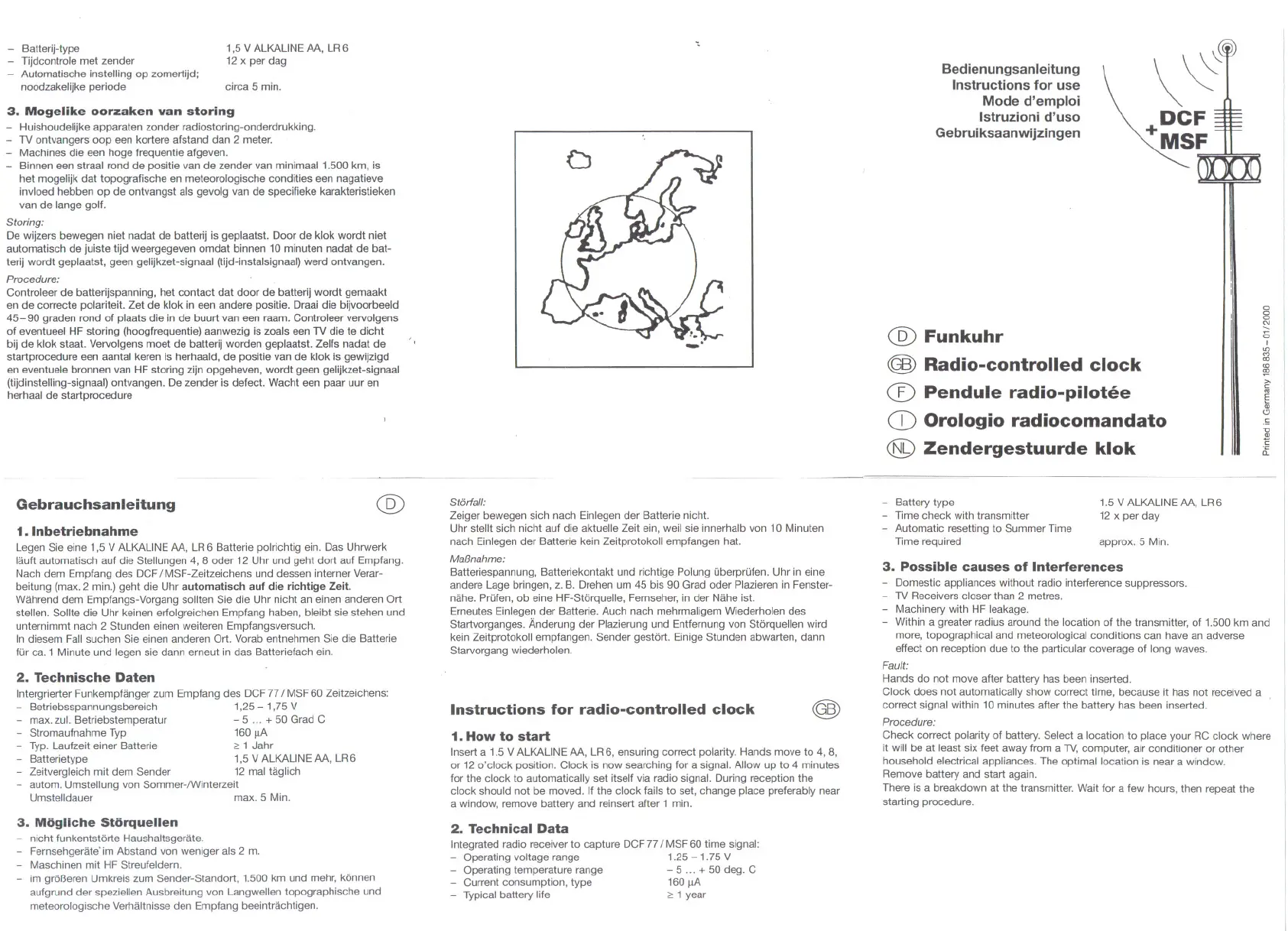 - Batterietype 1,5 V ALKALlNE M, LR6