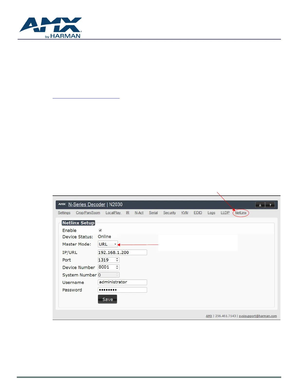From any main page of the unit webpage, click the NetLinx tab. See Figure1. Table1 provides descriptions for each