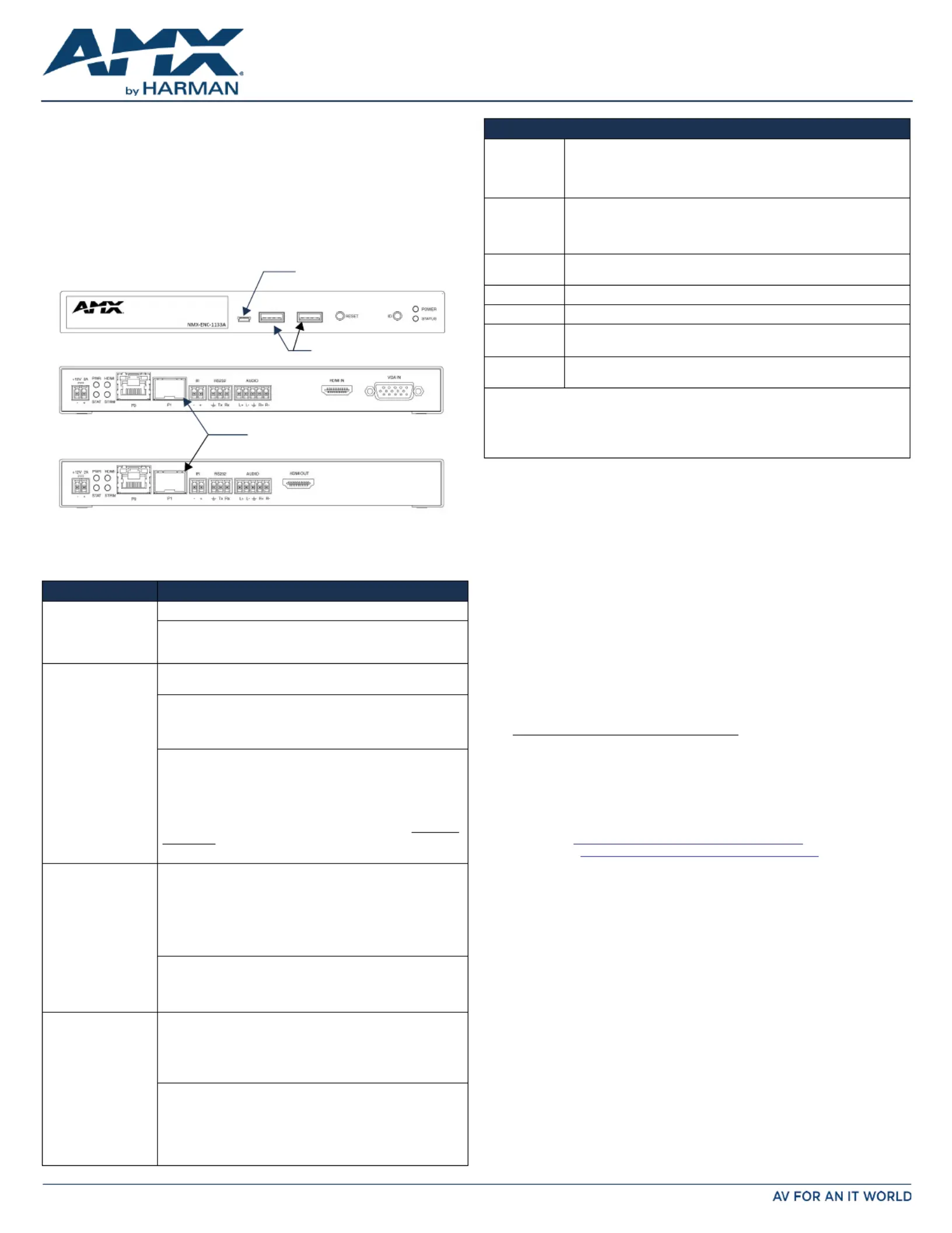 Lies die bedienungsanleitung für AMX NMX-ENC-N1122A (2 Seiten) kostenlos online; sie gehört zur Kategorie Nicht kategorisiert. Dieses Handbuch wurde von 35 Personen als hilfreich bewertet und erhielt im Schnitt 4.6 Sterne aus 5 Bewertungen. Hast du eine Frage zu AMX NMX-ENC-N1122A oder möchtest du andere Nutzer dieses Produkts befragen? Stelle eine Frage
