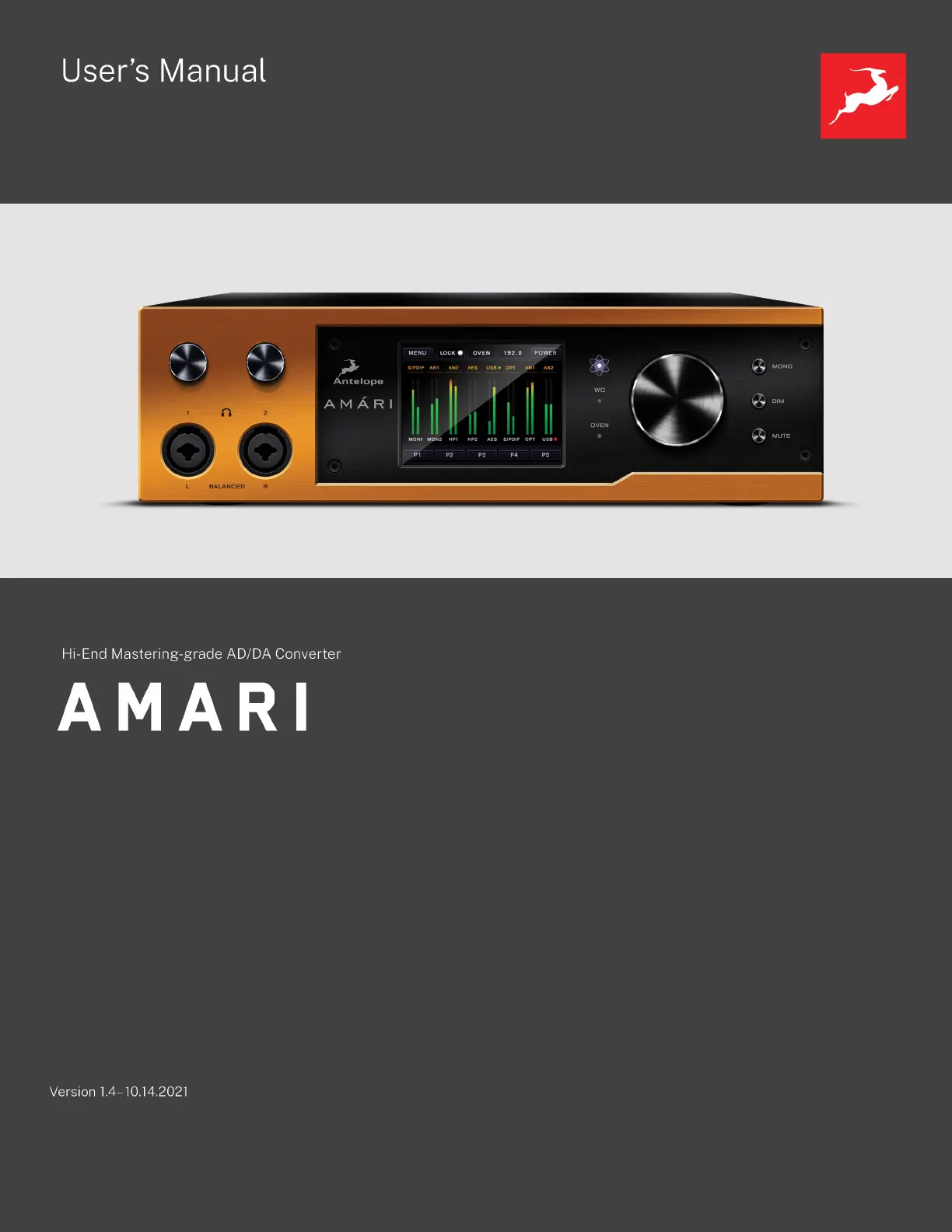 Lies die bedienungsanleitung für Antelope Audio Amari (41 Seiten) kostenlos online; sie gehört zur Kategorie Nicht kategorisiert. Dieses Handbuch wurde von 44 Personen als hilfreich bewertet und erhielt im Schnitt 4.7 Sterne aus 22.5 Bewertungen. Hast du eine Frage zu Antelope Audio Amari oder möchtest du andere Nutzer dieses Produkts befragen? Stelle eine Frage