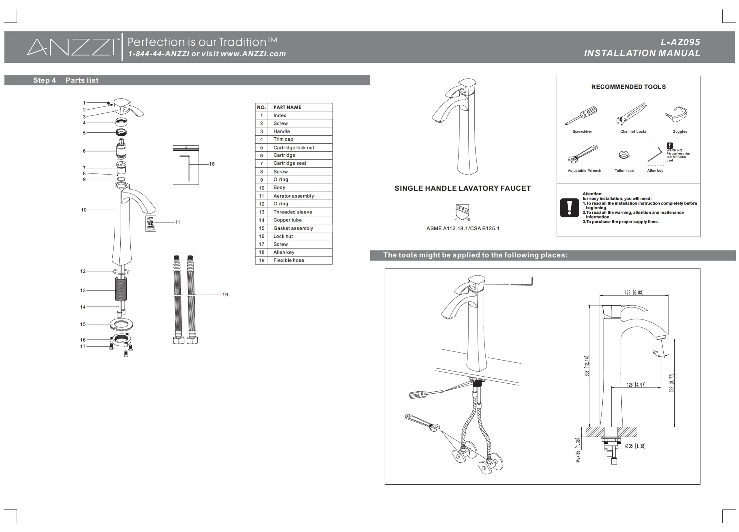 Lies die bedienungsanleitung für ANZZI L-AZ095 (2 Seiten) kostenlos online; sie gehört zur Kategorie Wasserhahn. Dieses Handbuch wurde von 2 Personen als hilfreich bewertet und erhielt im Schnitt 4.5 Sterne aus 5 Bewertungen. Hast du eine Frage zu ANZZI L-AZ095 oder möchtest du andere Nutzer dieses Produkts befragen? Stelle eine Frage