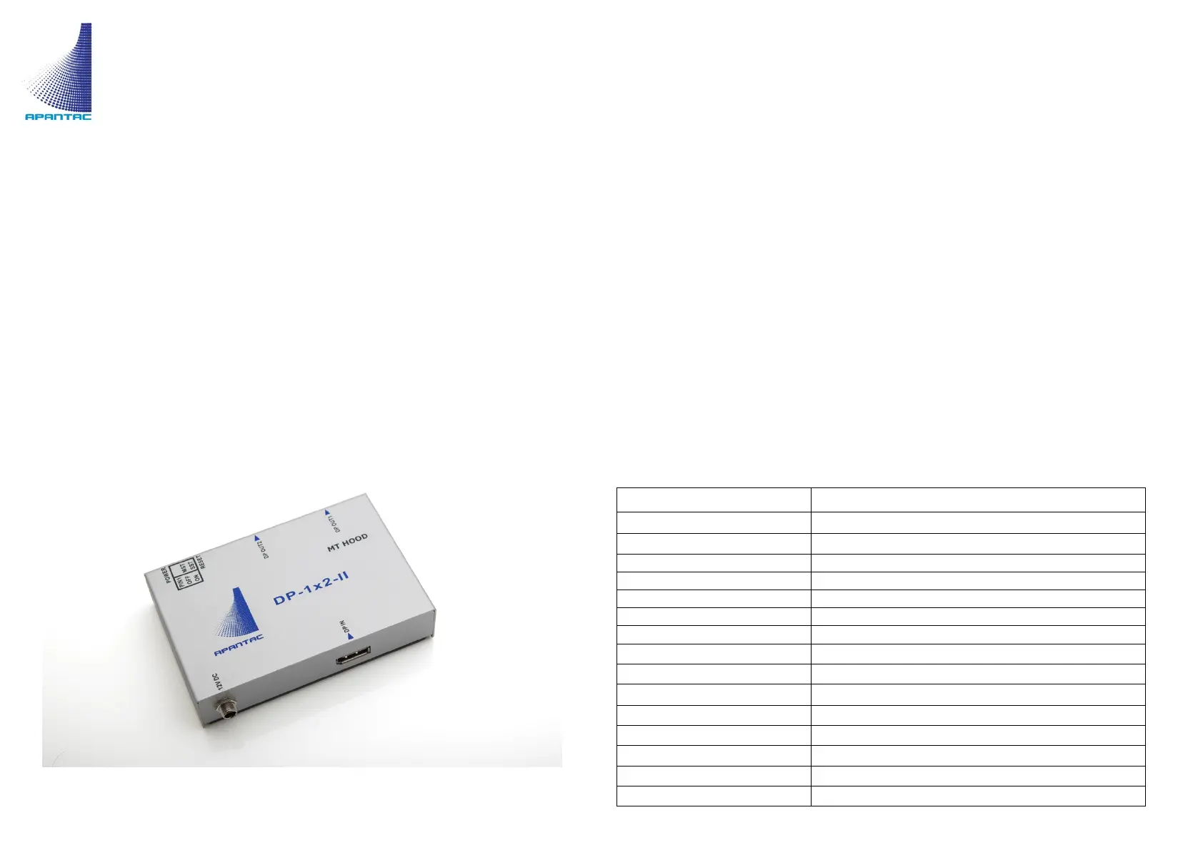 Apantac DP-1x2-II Bedienungsanleitung