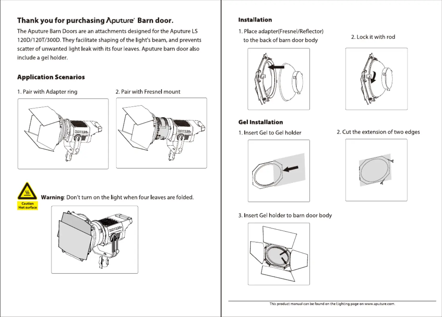 Lies die bedienungsanleitung für Aputure Barn Doors (1 Seiten) kostenlos online; sie gehört zur Kategorie Blitz. Dieses Handbuch wurde von 42 Personen als hilfreich bewertet und erhielt im Schnitt 4.6 Sterne aus 21.5 Bewertungen. Hast du eine Frage zu Aputure Barn Doors oder möchtest du andere Nutzer dieses Produkts befragen? Stelle eine Frage