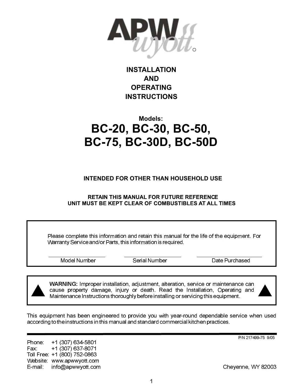 APW Wyott BC-31 Bedienungsanleitung