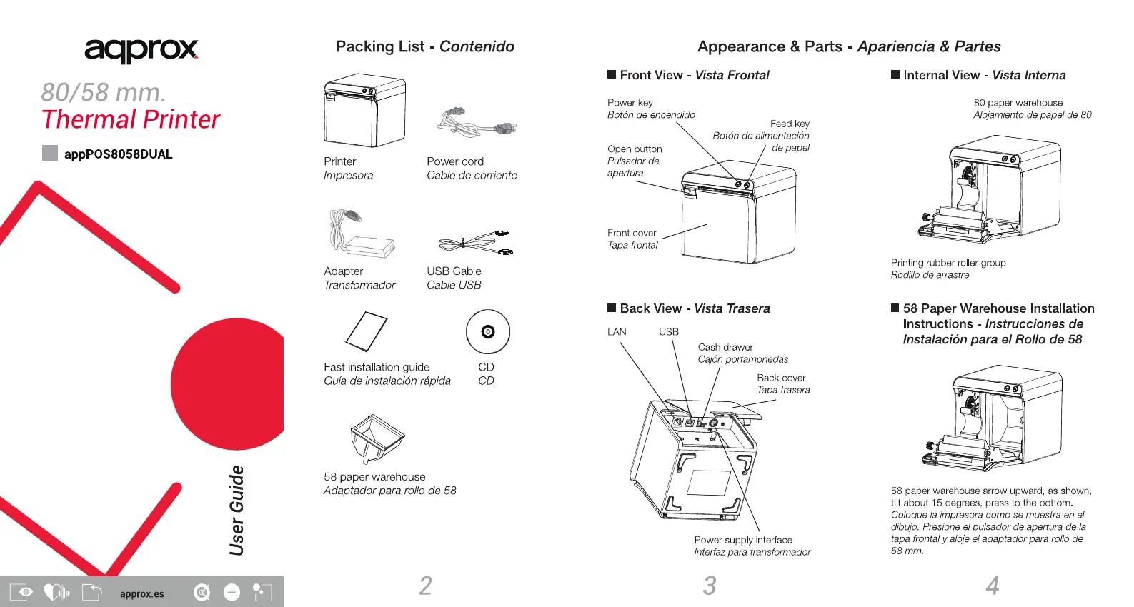 Lies die bedienungsanleitung für Aqprox appPOS8058DUAL (2 Seiten) kostenlos online; sie gehört zur Kategorie Drucker. Dieses Handbuch wurde von 2 Personen als hilfreich bewertet und erhielt im Schnitt 4.6 Sterne aus 9 Bewertungen. Hast du eine Frage zu Aqprox appPOS8058DUAL oder möchtest du andere Nutzer dieses Produkts befragen? Stelle eine Frage