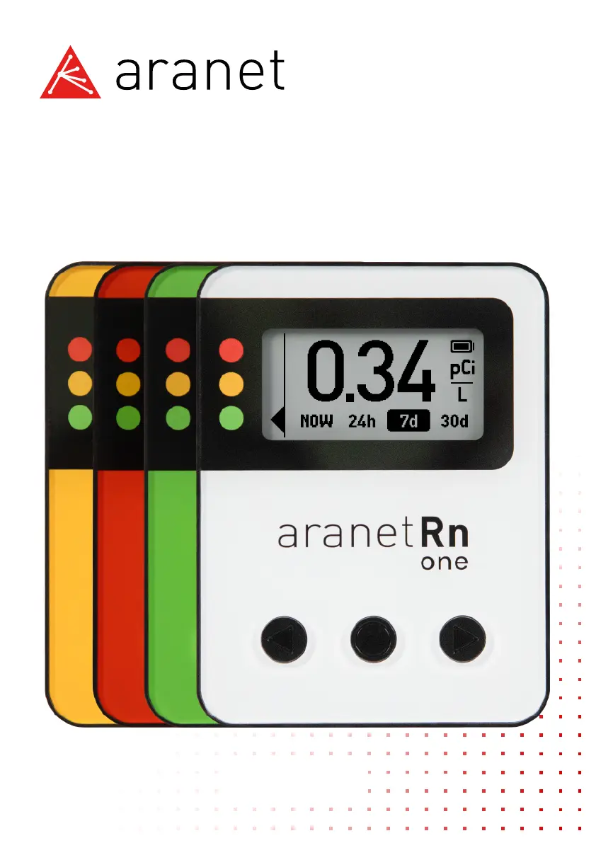 Lies die bedienungsanleitung für Aranet Radon One (8 Seiten) kostenlos online; sie gehört zur Kategorie Gasdetektor. Dieses Handbuch wurde von 2 Personen als hilfreich bewertet und erhielt im Schnitt 4.9 Sterne aus 7 Bewertungen. Hast du eine Frage zu Aranet Radon One oder möchtest du andere Nutzer dieses Produkts befragen? Stelle eine Frage