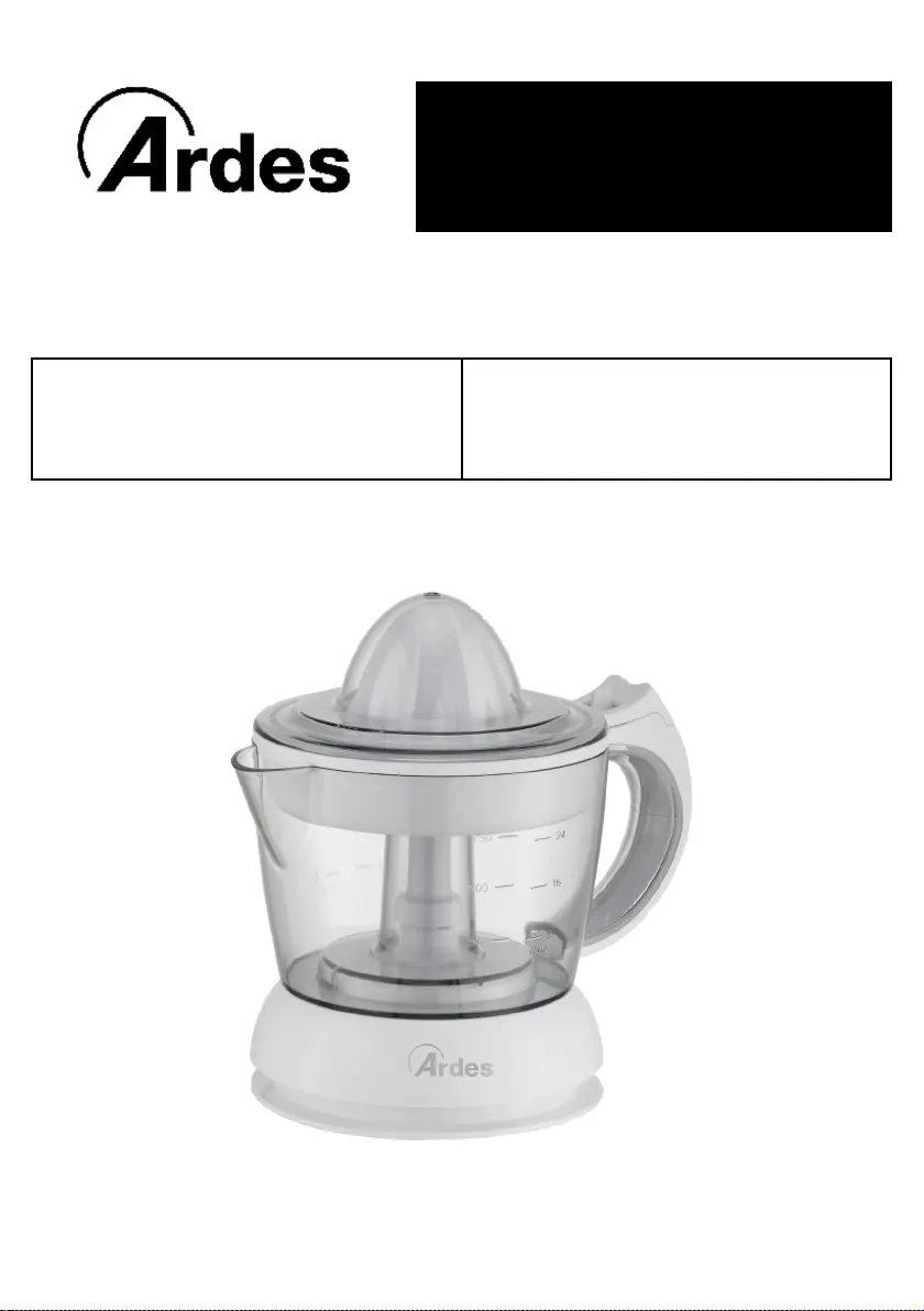 Lies die bedienungsanleitung für Ardes Tango ARSPRE02 (20 Seiten) kostenlos online; sie gehört zur Kategorie Entsafter. Dieses Handbuch wurde von 29 Personen als hilfreich bewertet und erhielt im Schnitt 5.0 Sterne aus 15 Bewertungen. Hast du eine Frage zu Ardes Tango ARSPRE02 oder möchtest du andere Nutzer dieses Produkts befragen? Stelle eine Frage