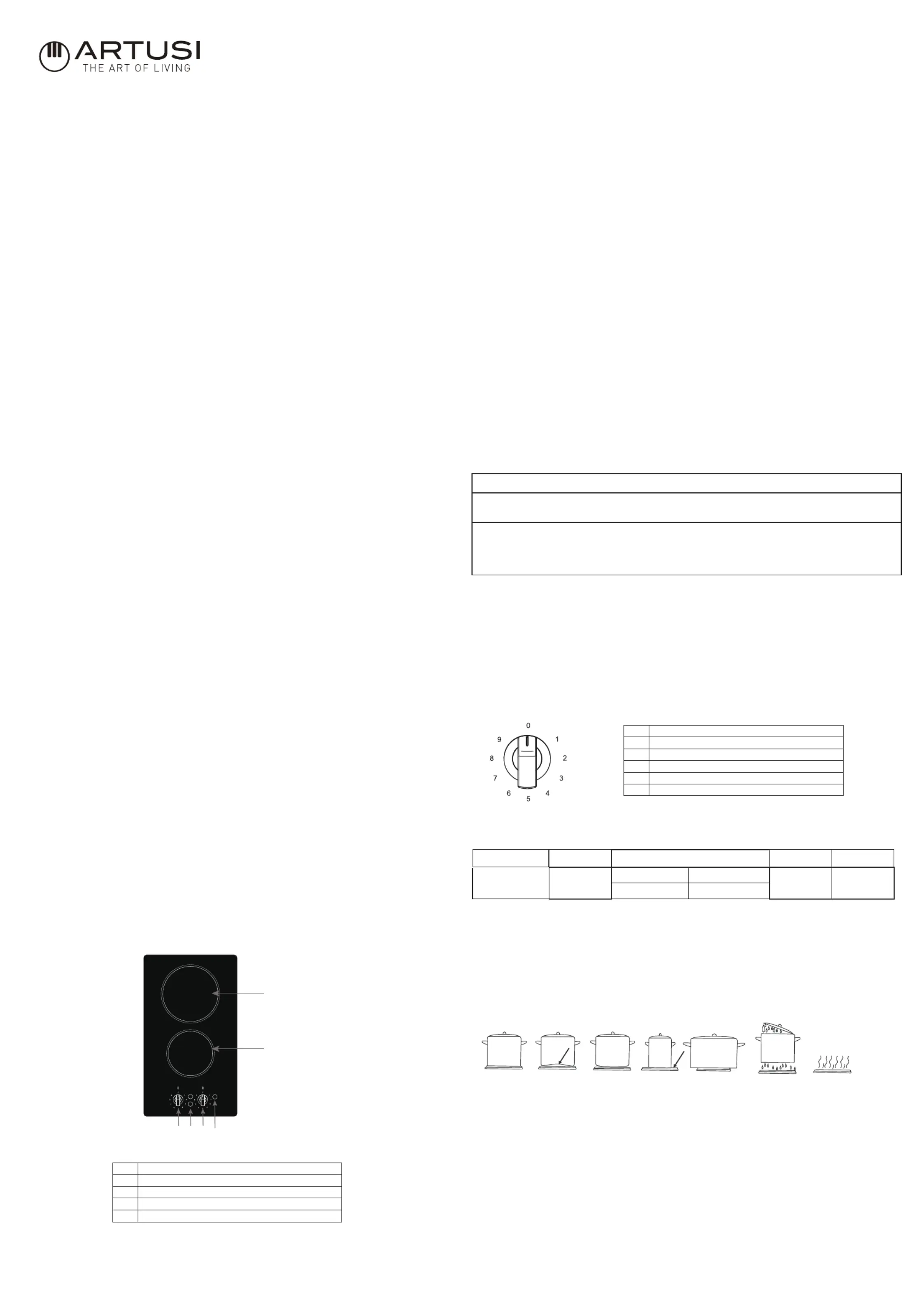 pans on them. Once switched off, the plates remain warm for a while, do not touch. Switch off the