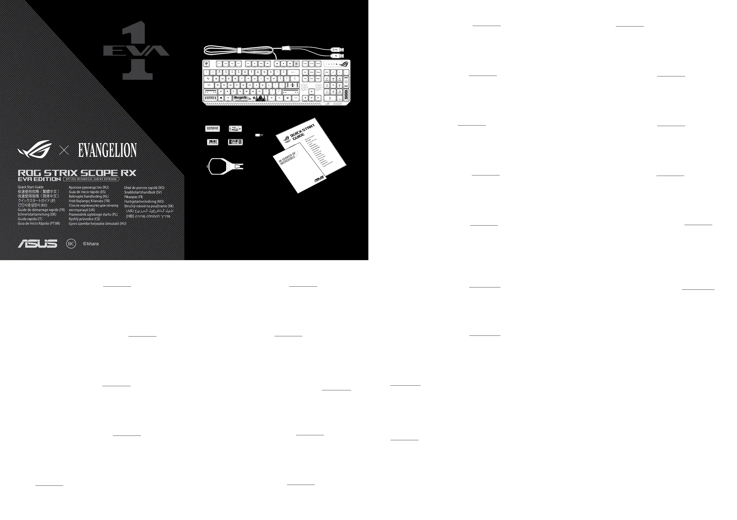 Lies die bedienungsanleitung für Asus ROG Strix Scope RX EVA Edition (2 Seiten) kostenlos online; sie gehört zur Kategorie Nicht kategorisiert. Dieses Handbuch wurde von 81 Personen als hilfreich bewertet und erhielt im Schnitt 4.6 Sterne aus 41 Bewertungen. Hast du eine Frage zu Asus ROG Strix Scope RX EVA Edition oder möchtest du andere Nutzer dieses Produkts befragen? Stelle eine Frage