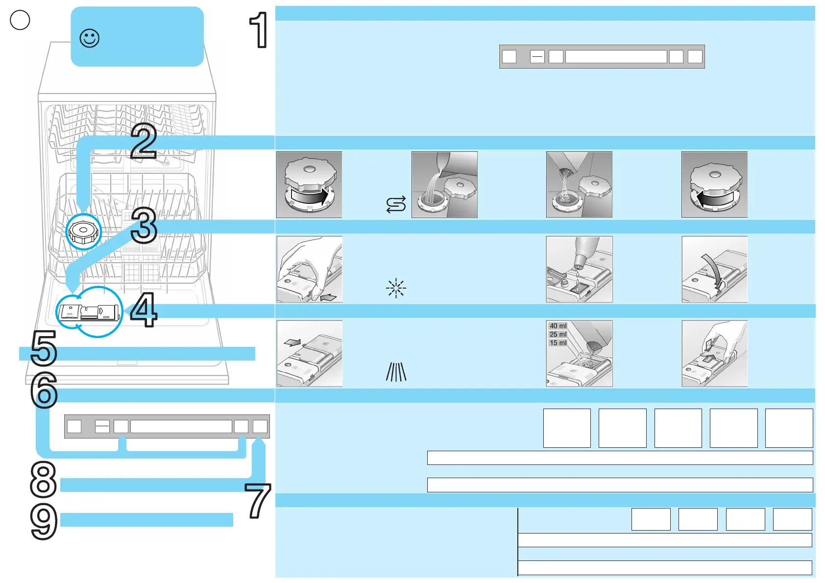 – Fill in salt and rinse aid (see below)