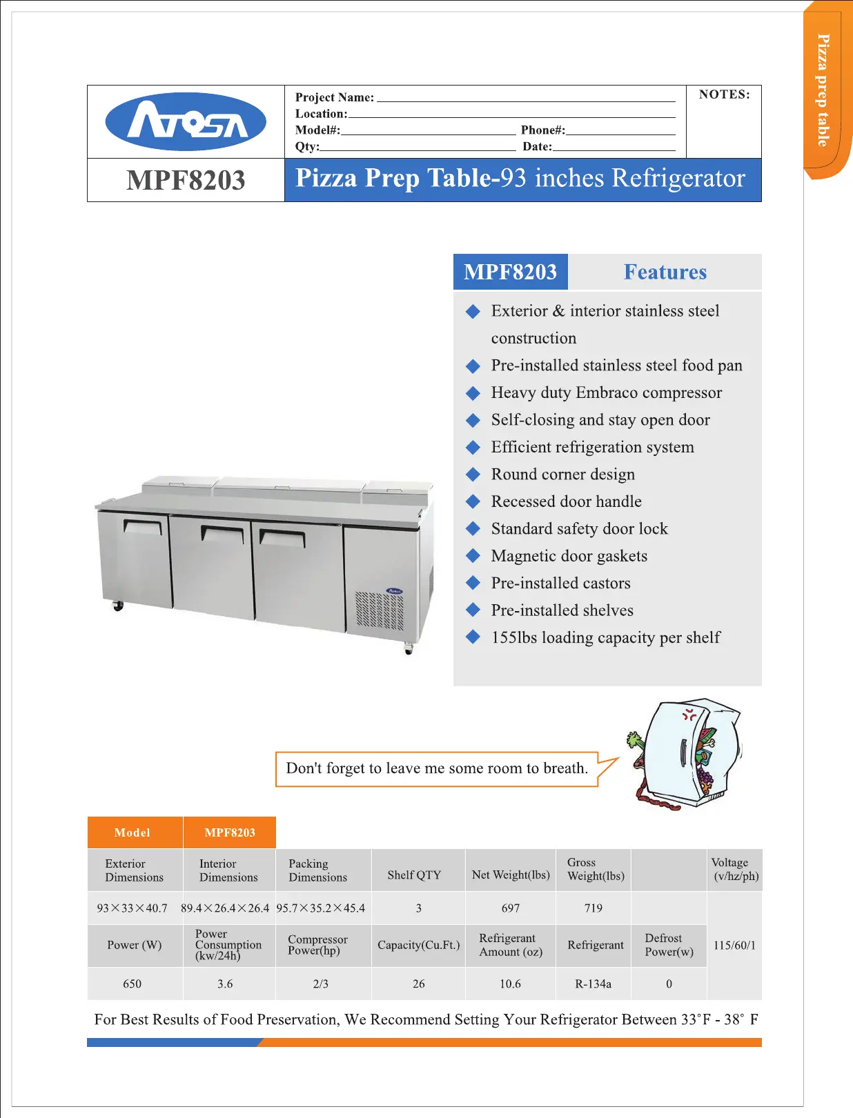 Atosa MPF8203 Bedienungsanleitung