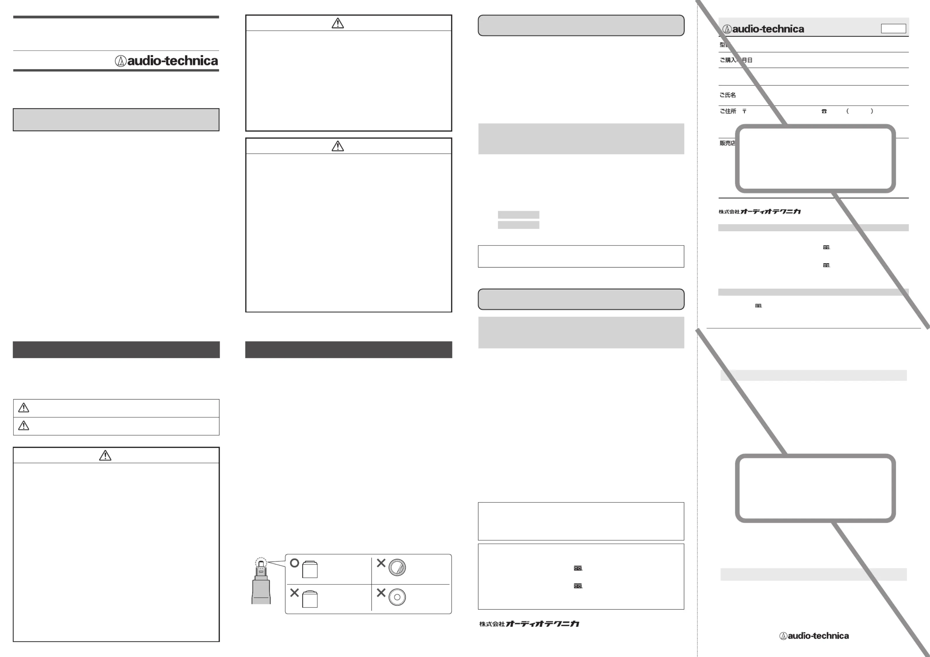 オーディオテクニカ製品をお買い上げいただきましてまことにありがとうございます。下記は、