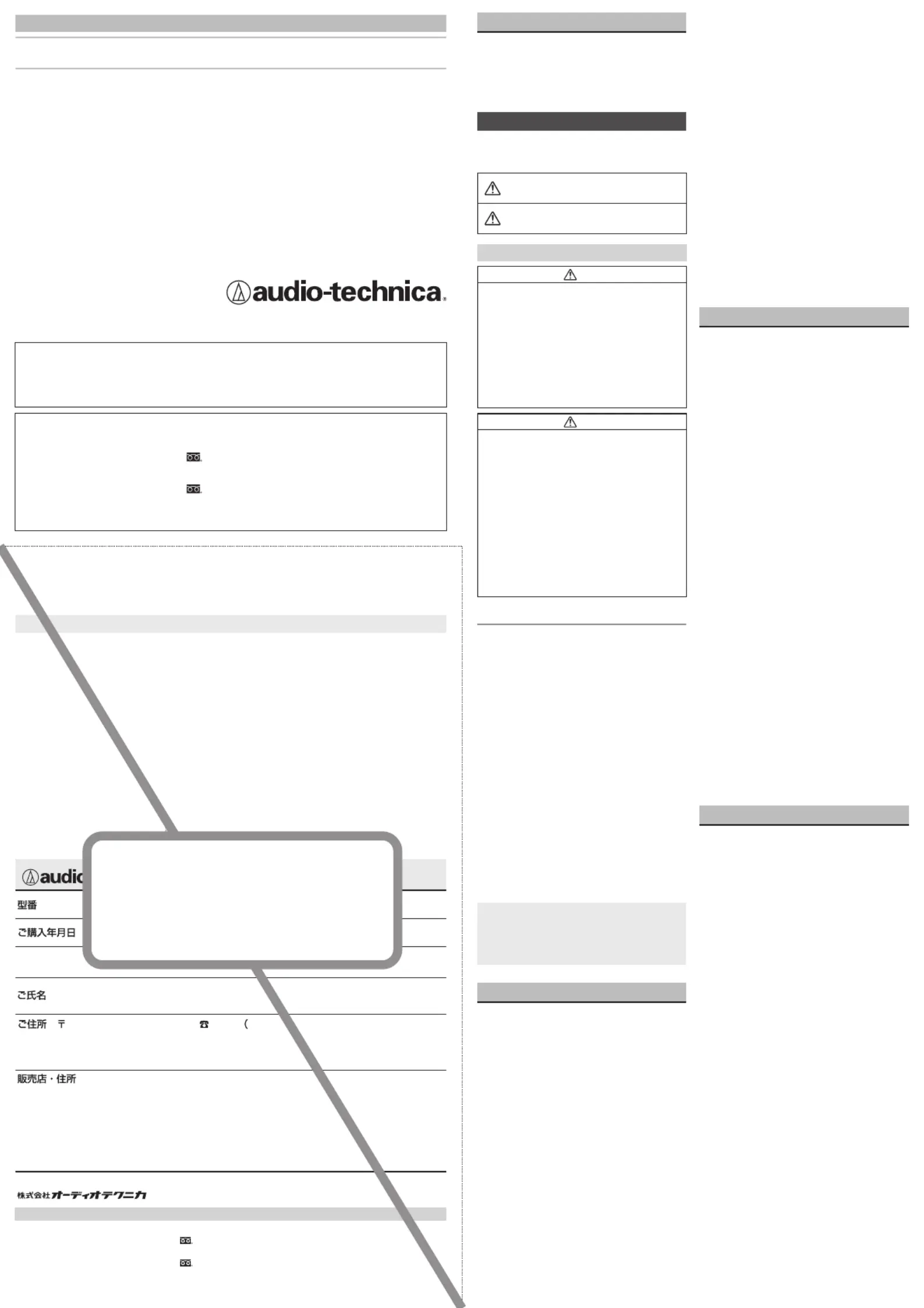 オーディオテクニカ製品をお買い上げいただきましてまことにありがとうございます。製品に万一異常が生じた場合は、お買い上