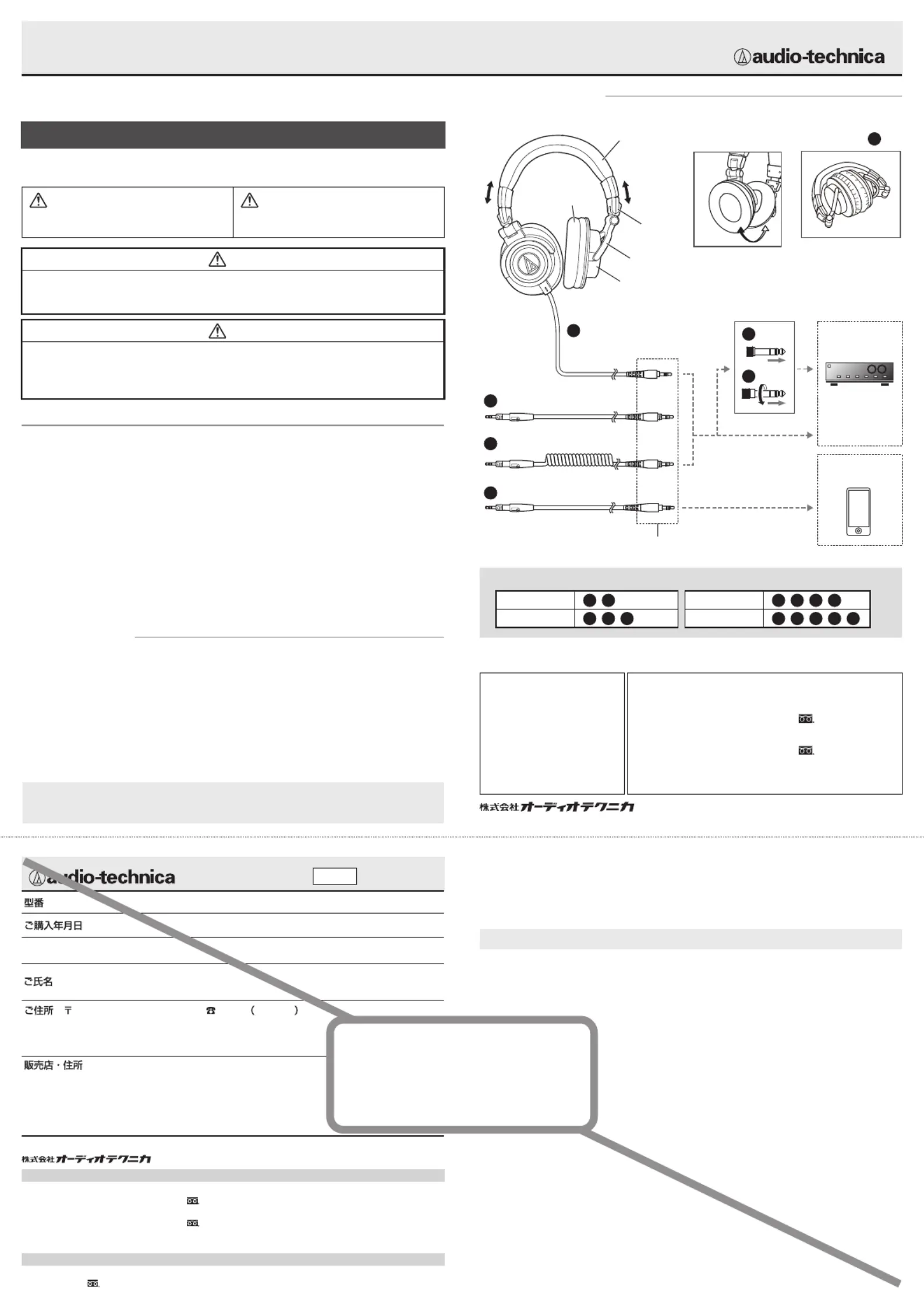 お店、当社営業所または当社ホームページのサポートまでご連絡ください。 また修理の際オーディオテクニカの