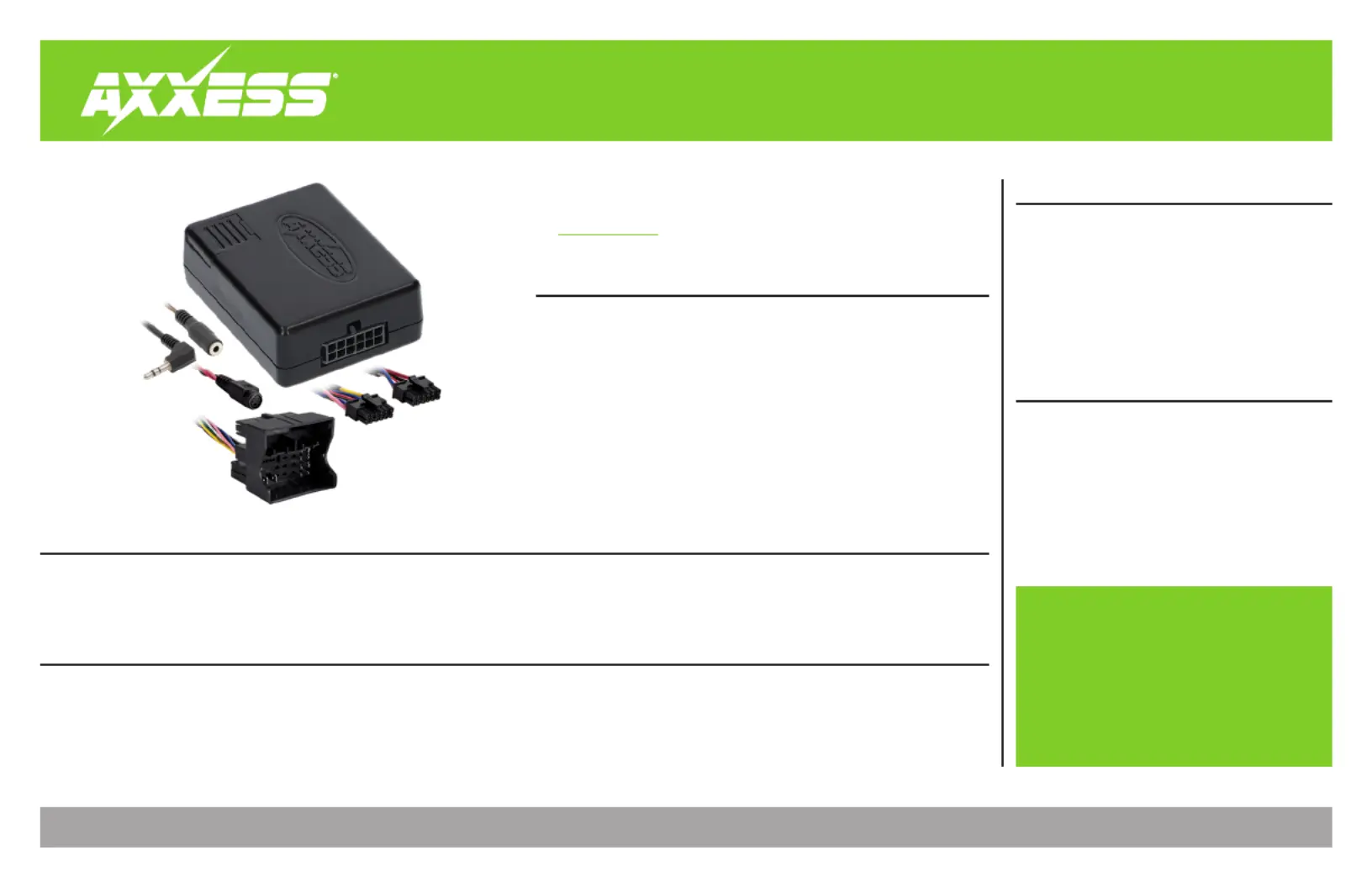 Visit for more detailed information about the product and up-to-date AxxessInterfaces.com