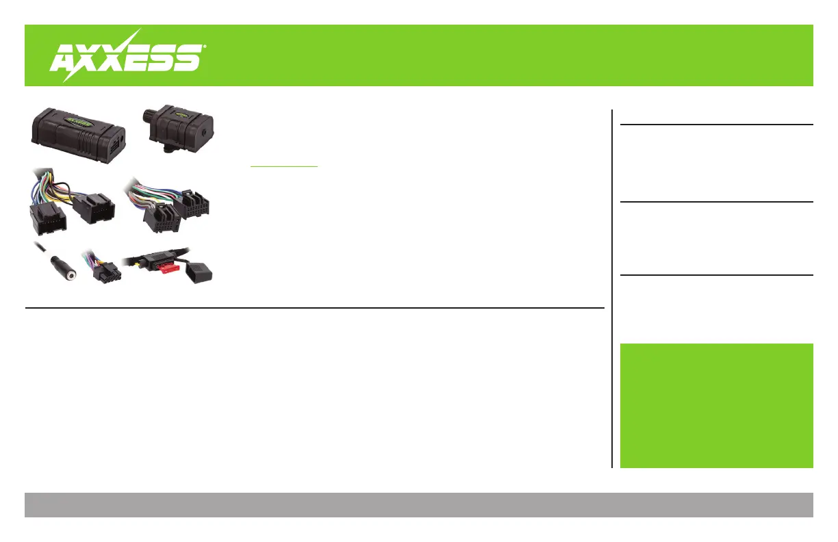 Visit AxxessInterfaces.comfor more detailed information about the product and up-to-date vehicle specific applications.