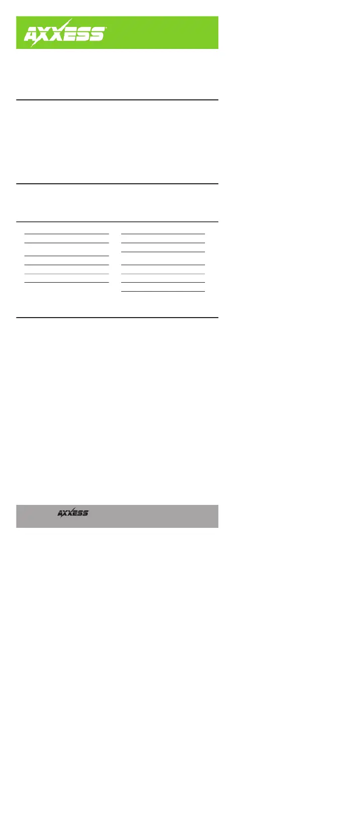 Lies die bedienungsanleitung für AXESS AXRSEH-G2 (2 Seiten) kostenlos online; sie gehört zur Kategorie Nicht kategorisiert. Dieses Handbuch wurde von 21 Personen als hilfreich bewertet und erhielt im Schnitt 5.0 Sterne aus 5 Bewertungen. Hast du eine Frage zu AXESS AXRSEH-G2 oder möchtest du andere Nutzer dieses Produkts befragen? Stelle eine Frage