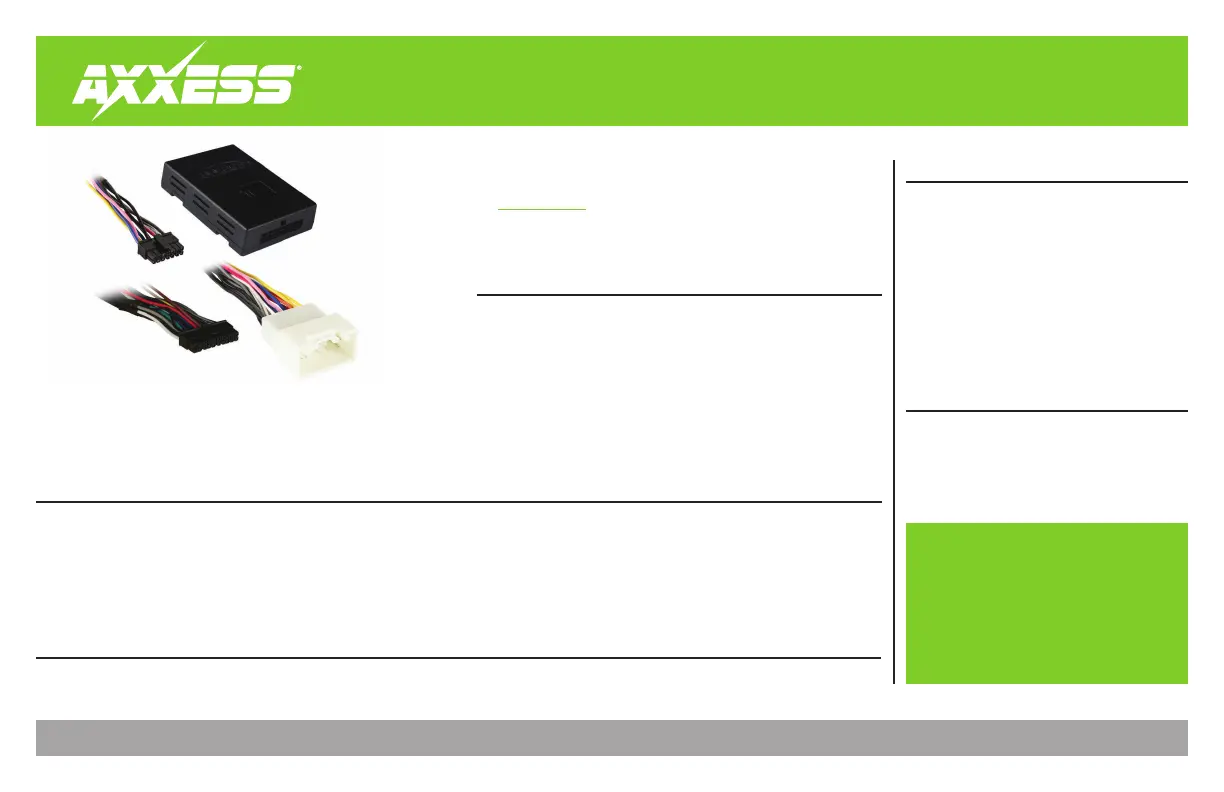 Visit AxxessInterfaces.com for more detailed information about the product and up-to-date