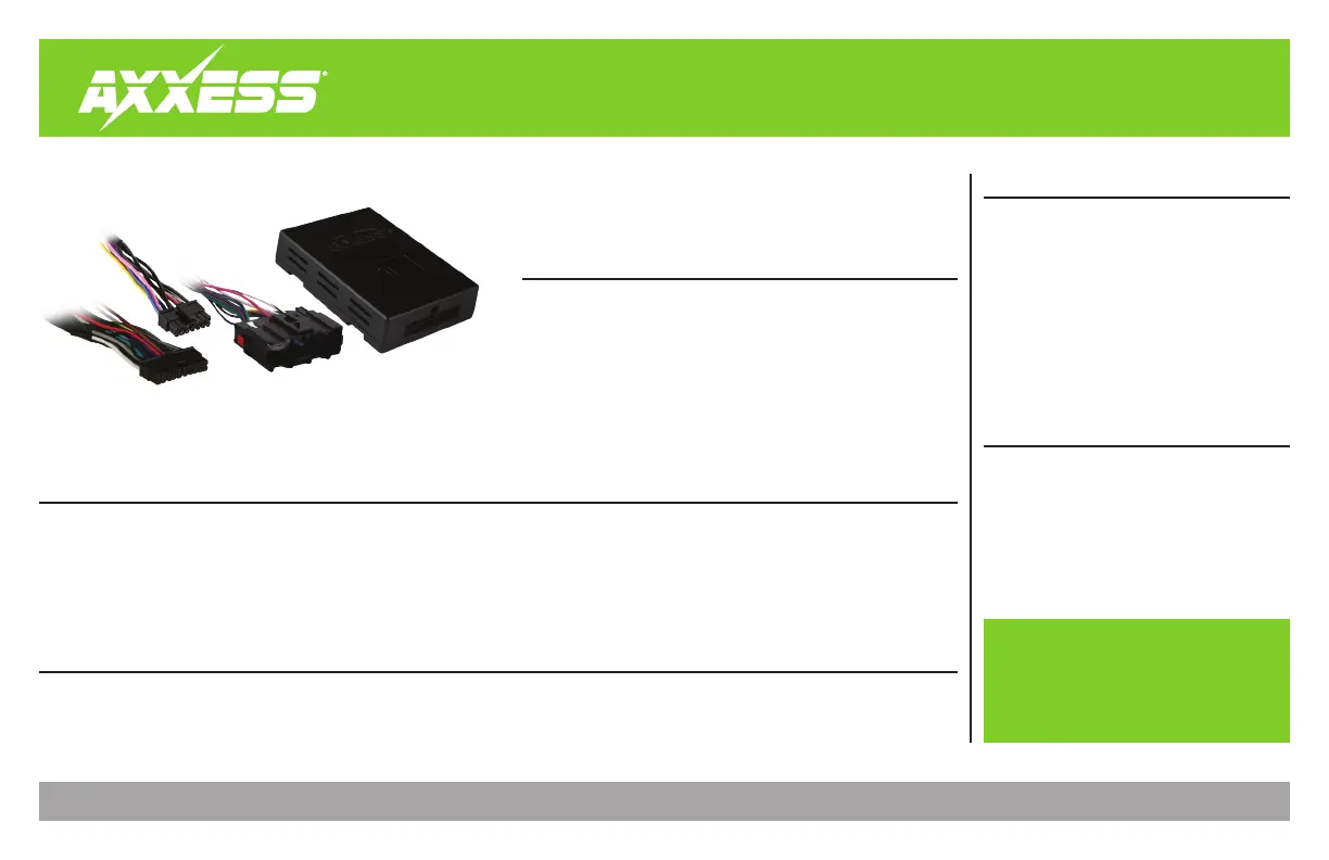 Lies die bedienungsanleitung für Axxess AXGMLN-06 (4 Seiten) kostenlos online; sie gehört zur Kategorie Nicht kategorisiert. Dieses Handbuch wurde von 4 Personen als hilfreich bewertet und erhielt im Schnitt 4.3 Sterne aus 8 Bewertungen. Hast du eine Frage zu Axxess AXGMLN-06 oder möchtest du andere Nutzer dieses Produkts befragen? Stelle eine Frage
