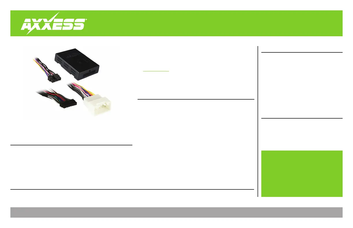 Visit AxxessInterfaces.com for more detailed information about the product and up-to-date