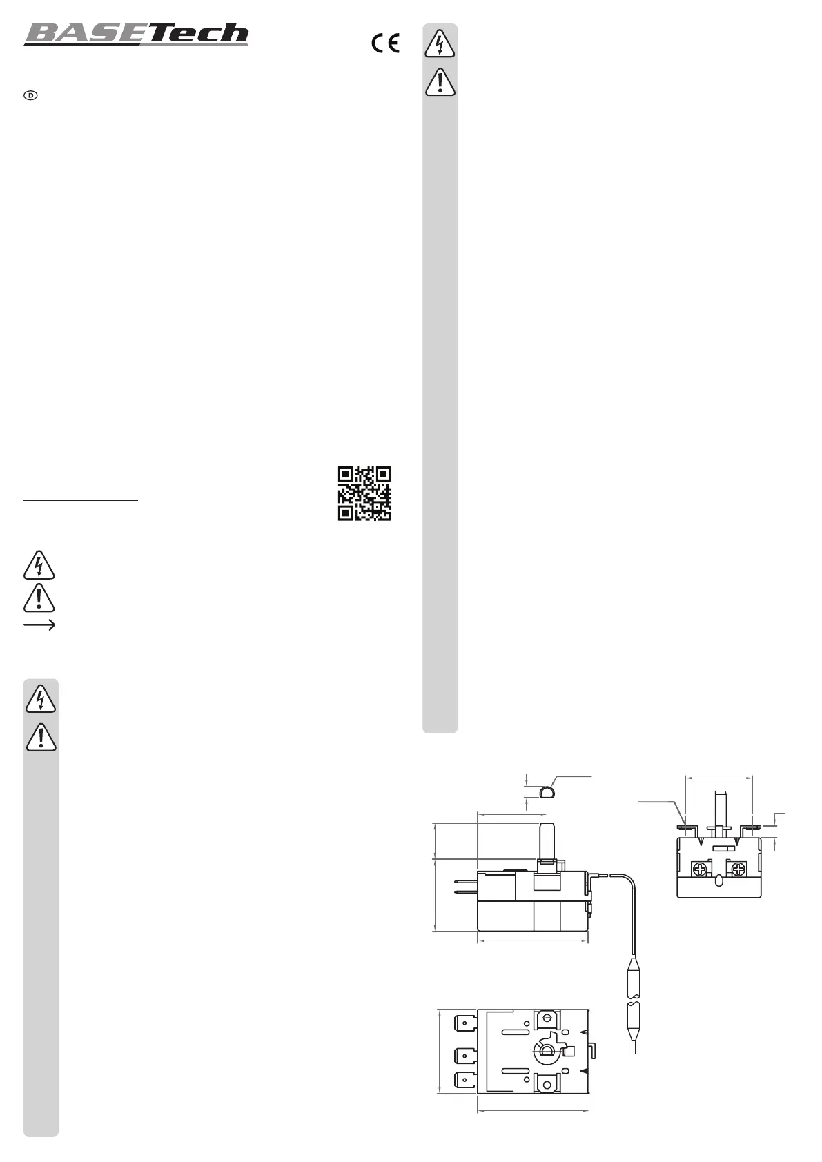 • Der Thermostat darf nur in geschlossenen Gehäusen montiert und betrieben