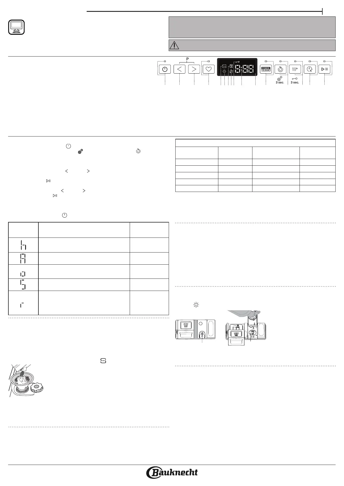 • Salz muss eingefüllt werden, wenn auf der Bedienblende die Anzeige-