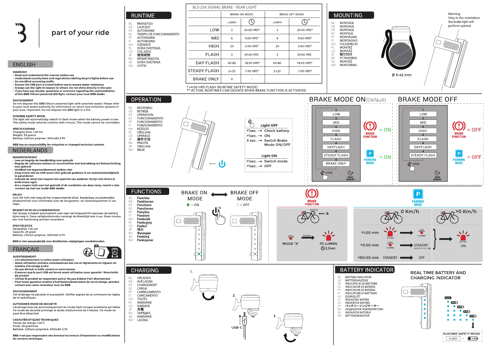 Lies die bedienungsanleitung für BBB SignalBrake 80 BLS-256 (4 Seiten) kostenlos online; sie gehört zur Kategorie Fahrradlampe. Dieses Handbuch wurde von 3 Personen als hilfreich bewertet und erhielt im Schnitt 4.2 Sterne aus 6 Bewertungen. Hast du eine Frage zu BBB SignalBrake 80 BLS-256 oder möchtest du andere Nutzer dieses Produkts befragen? Stelle eine Frage