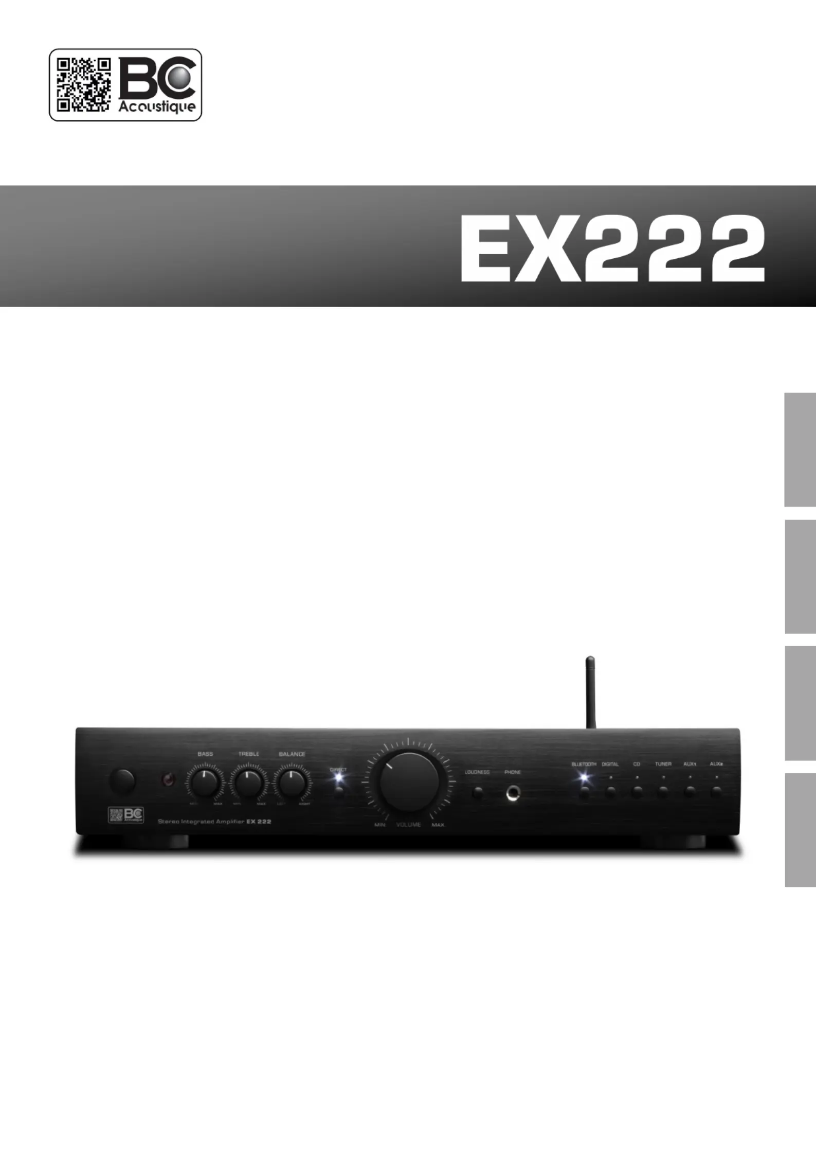 Lies die bedienungsanleitung für BC Acoustique EX-222 (8 Seiten) kostenlos online; sie gehört zur Kategorie Empfänger. Dieses Handbuch wurde von 31 Personen als hilfreich bewertet und erhielt im Schnitt 3.5 Sterne aus 16 Bewertungen. Hast du eine Frage zu BC Acoustique EX-222 oder möchtest du andere Nutzer dieses Produkts befragen? Stelle eine Frage