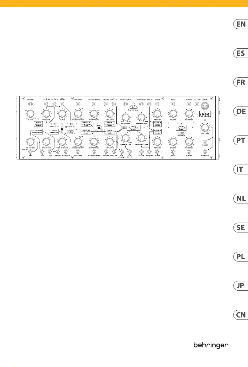 Lies die bedienungsanleitung für Behringer Kobol Expander (38 Seiten) kostenlos online; sie gehört zur Kategorie Hamer. Dieses Handbuch wurde von 33 Personen als hilfreich bewertet und erhielt im Schnitt 4.4 Sterne aus 4 Bewertungen. Hast du eine Frage zu Behringer Kobol Expander oder möchtest du andere Nutzer dieses Produkts befragen? Stelle eine Frage