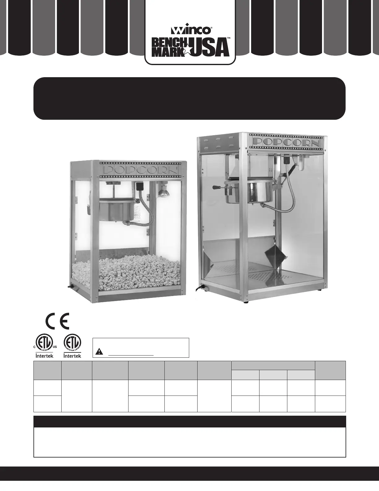Bedienungsanleitung Popcornmaschine Benchmark USA