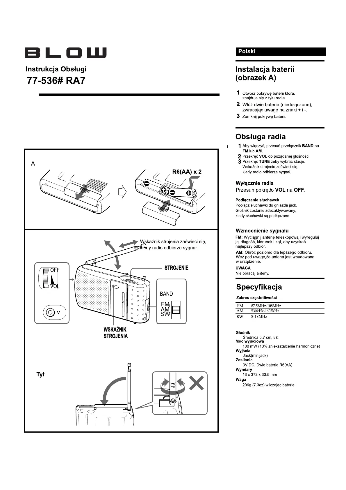 Lies die bedienungsanleitung für BLOW RA7 (1 Seiten) kostenlos online; sie gehört zur Kategorie Radio. Dieses Handbuch wurde von 2 Personen als hilfreich bewertet und erhielt im Schnitt 4.9 Sterne aus 7 Bewertungen. Hast du eine Frage zu BLOW RA7 oder möchtest du andere Nutzer dieses Produkts befragen? Stelle eine Frage